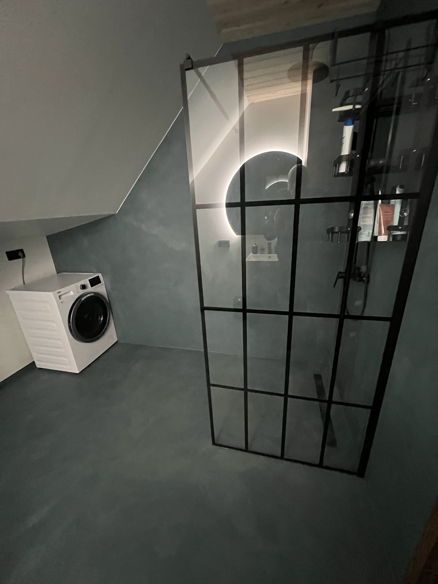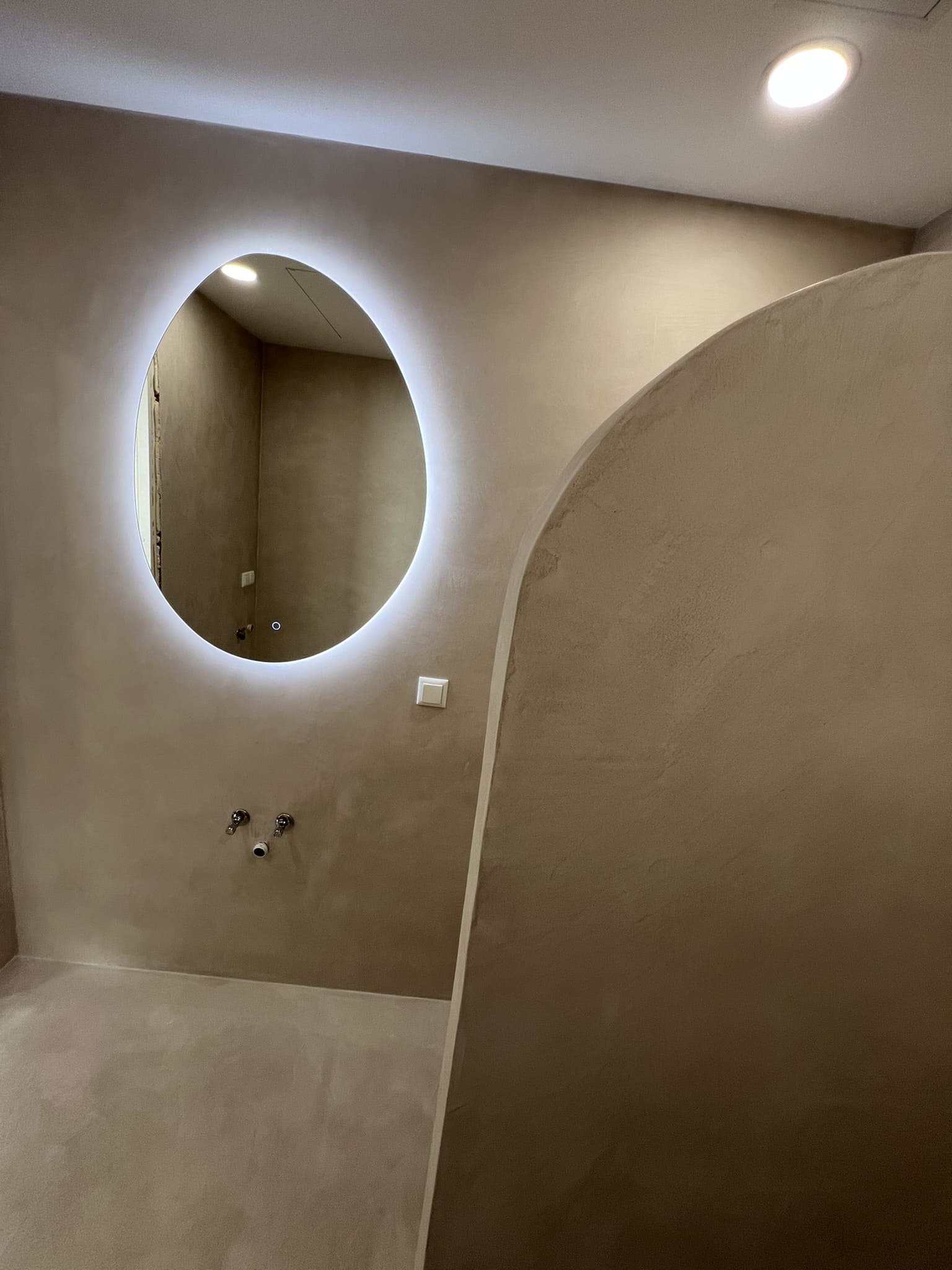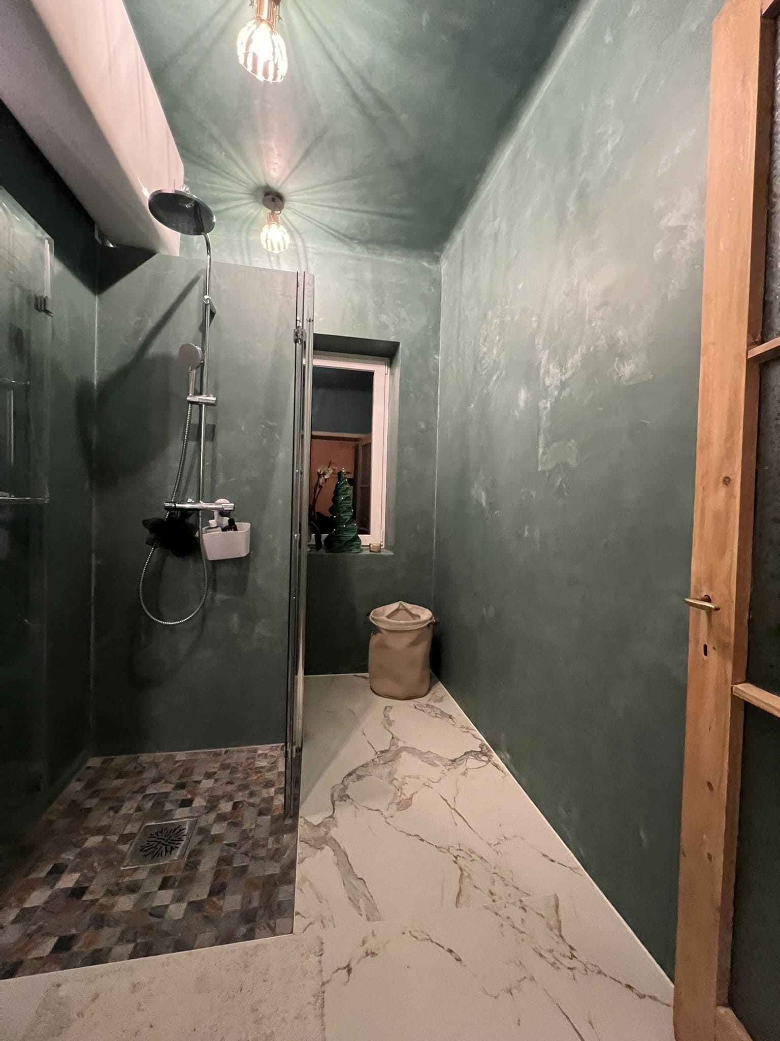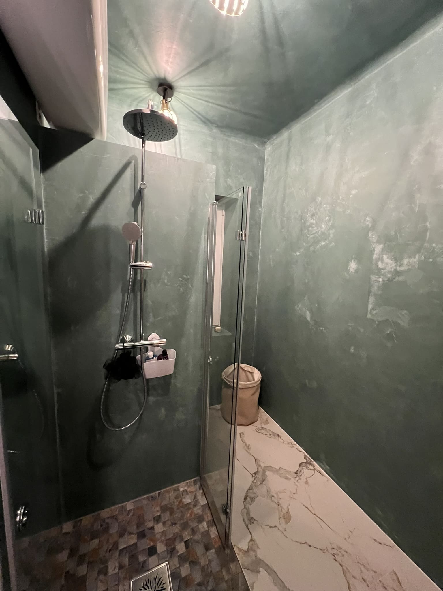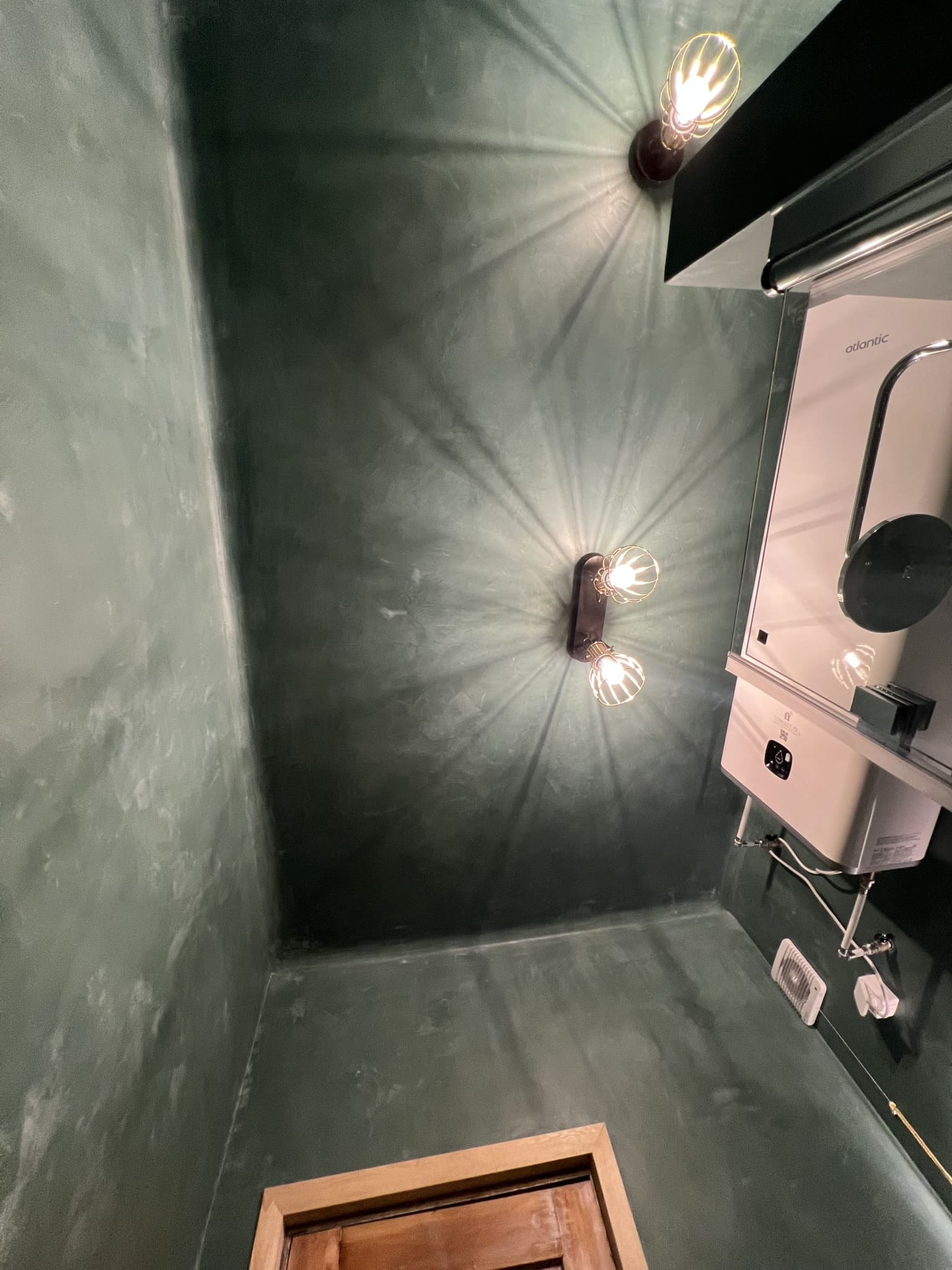 Kahe tooniga mikrotsemendi tööd on alati huvitavad. Mikrotsement paigaldati olemasoleva keraamilisele plaadile. Toon Basebeton Jade (sein), Basebeton Mouse ( põrand).