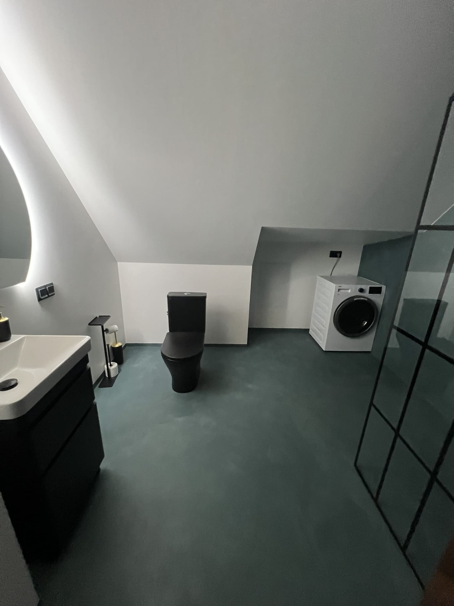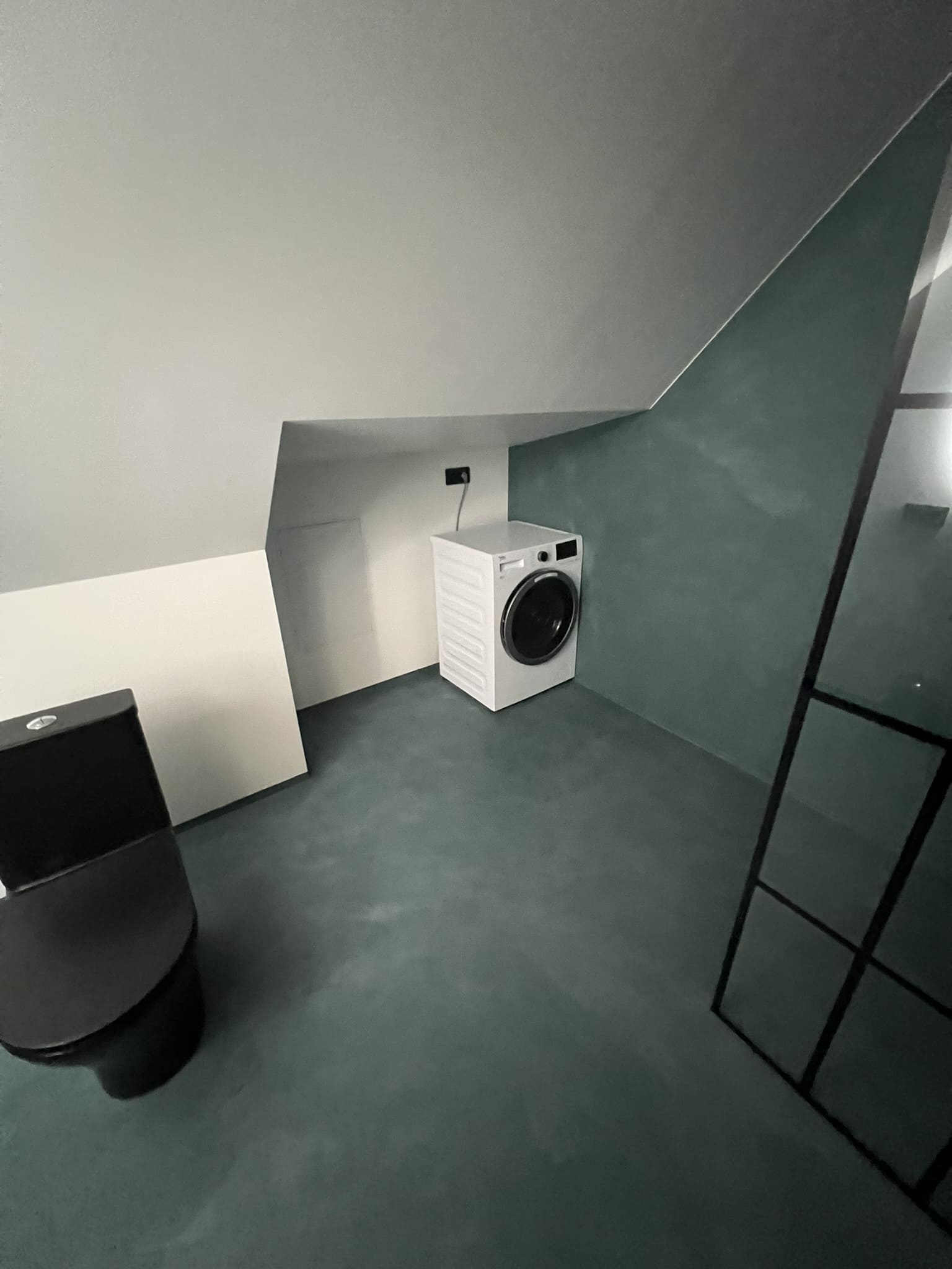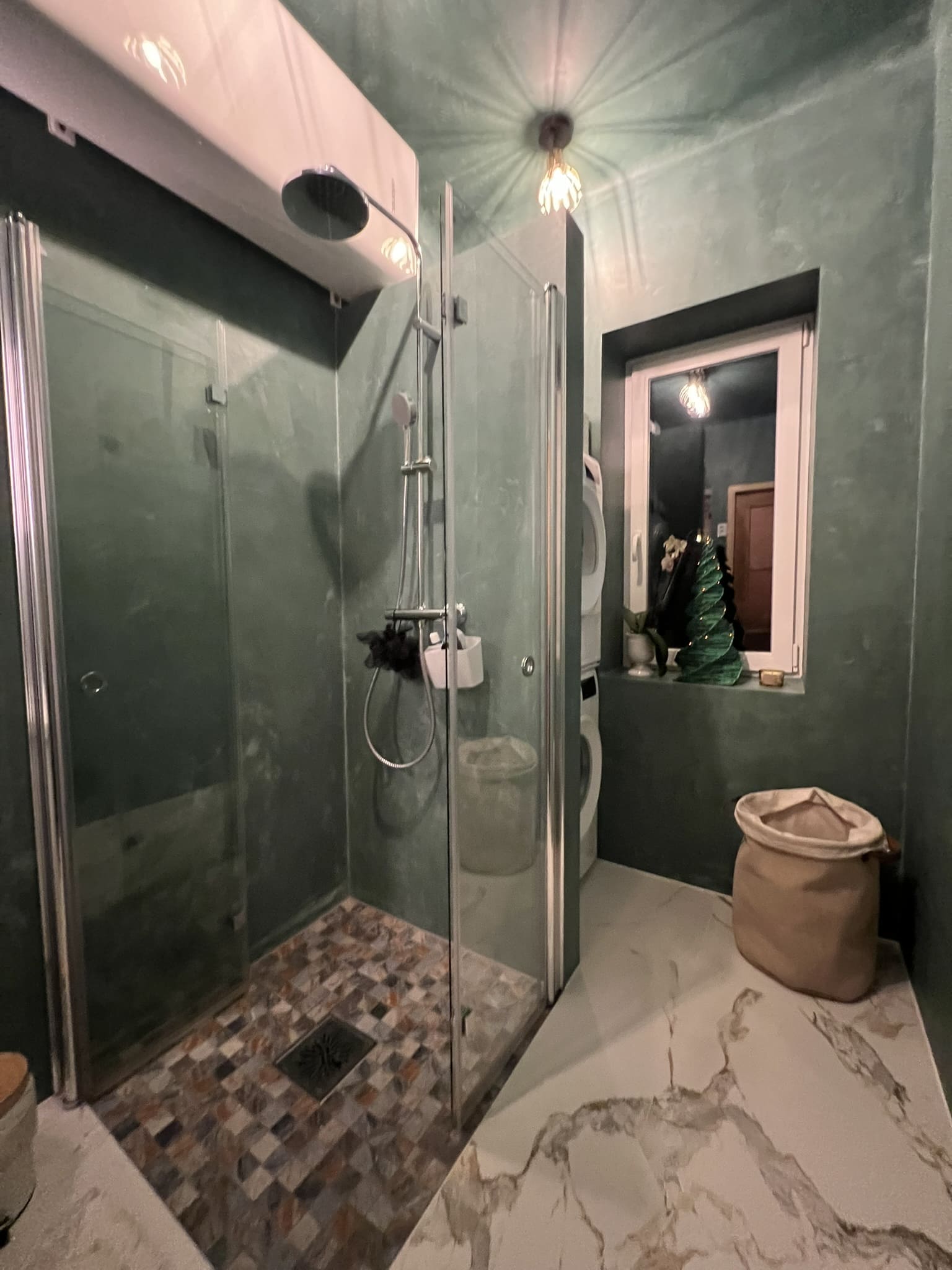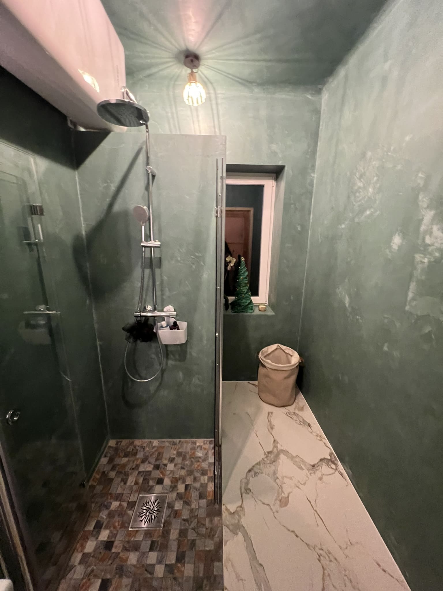Kahe tooniga mikrotsemendi tööd on alati huvitavad. Mikrotsement paigaldati olemasoleva keraamilisele plaadile. Toon Basebeton Jade (sein), Basebeton Mouse ( põrand).