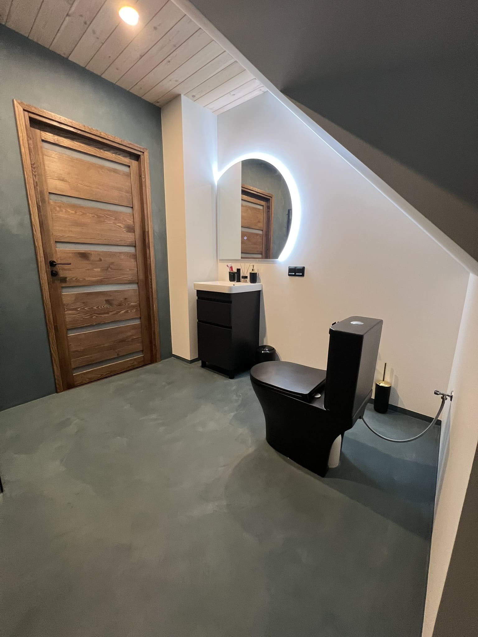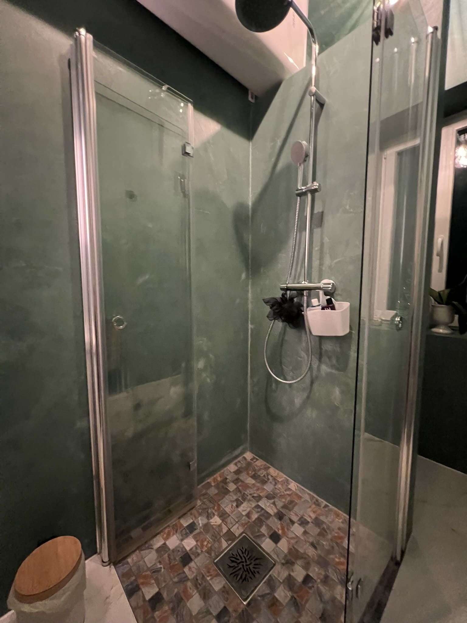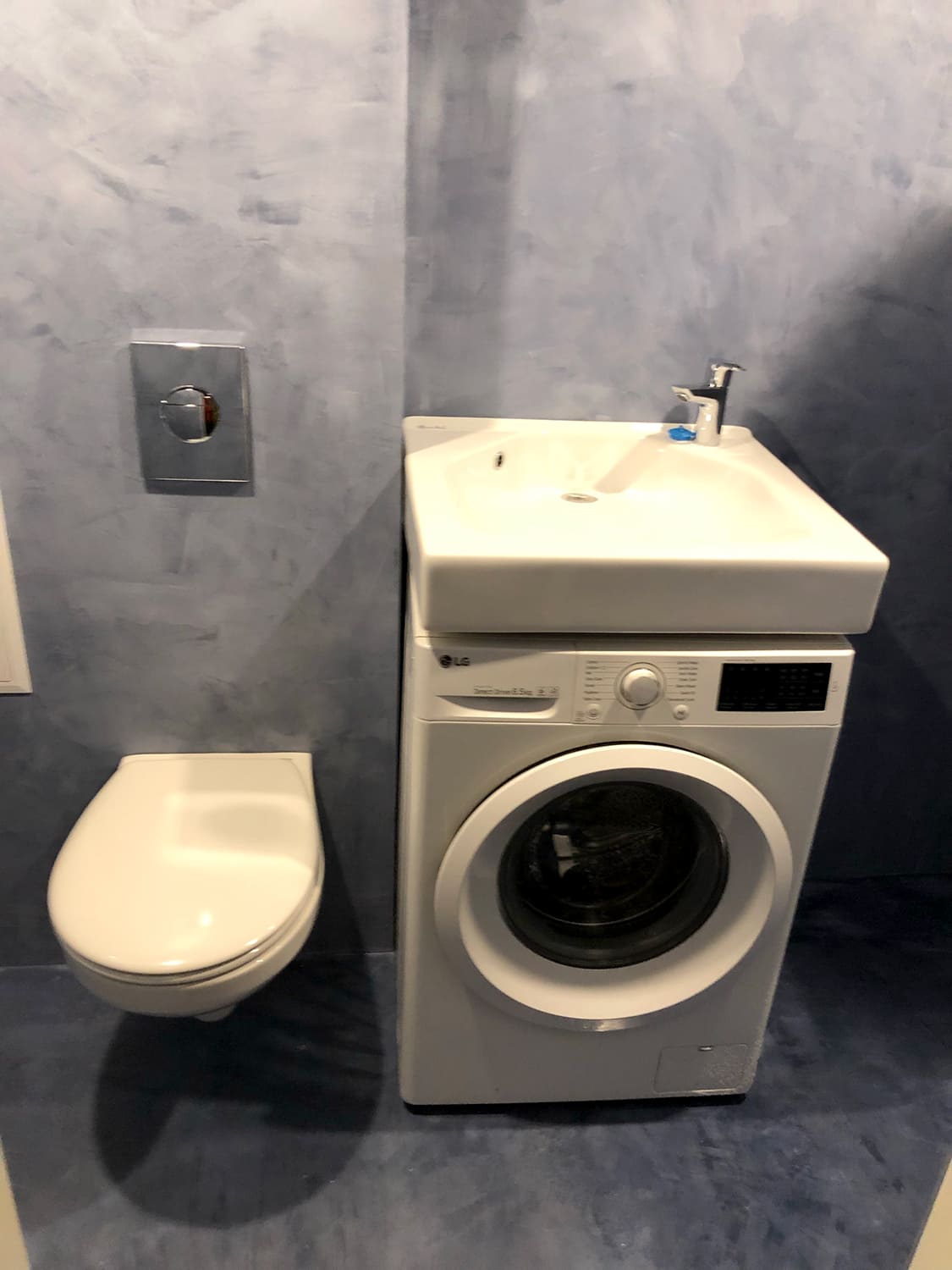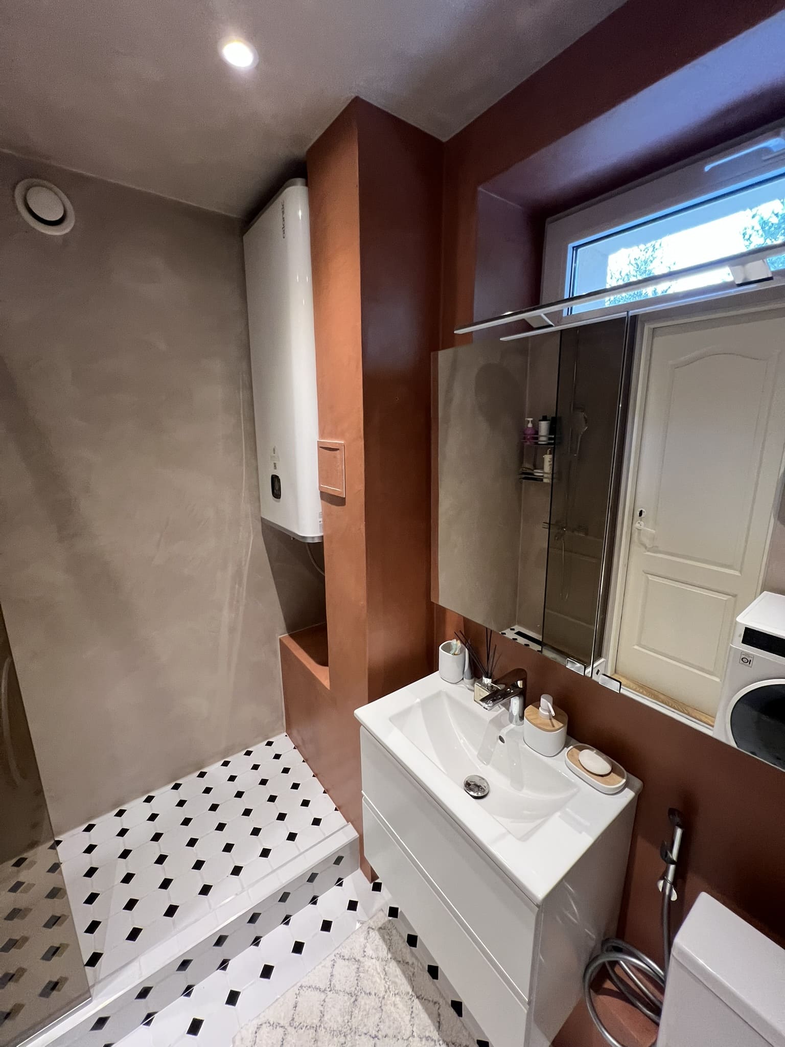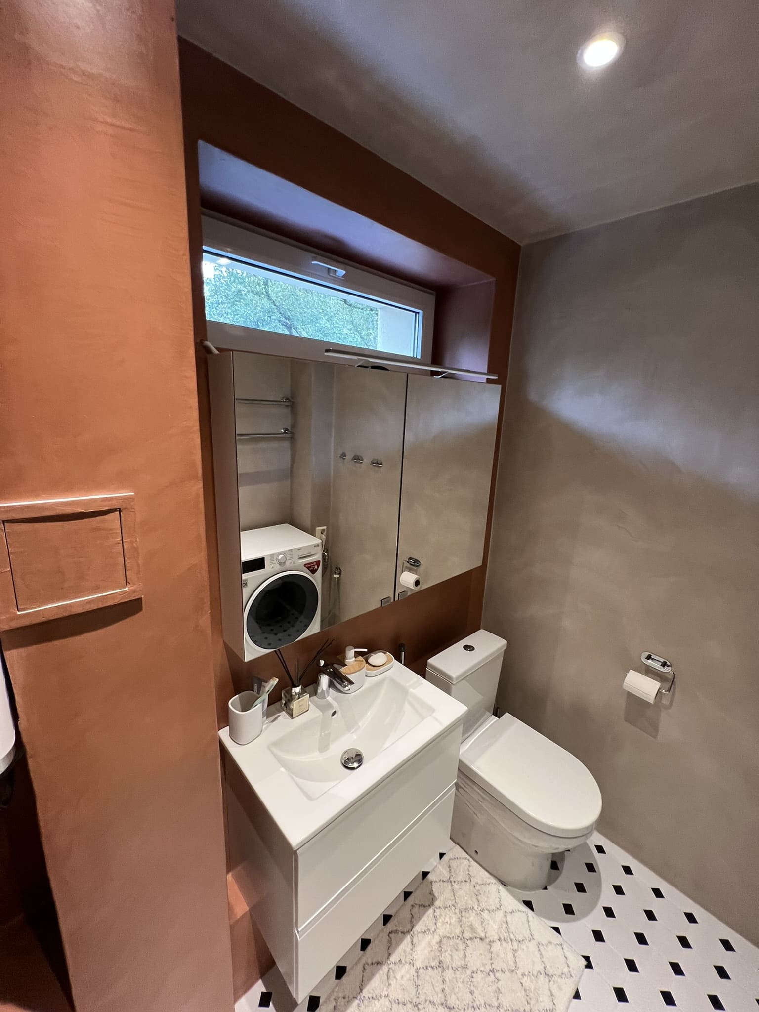 Kahe tooniga mikrotsemendi tööd on alati huvitavad. Mikrotsement paigaldati olemasoleva keraamilisele plaadile. Toon Basebeton Jade (sein), Basebeton Mouse ( põrand).
