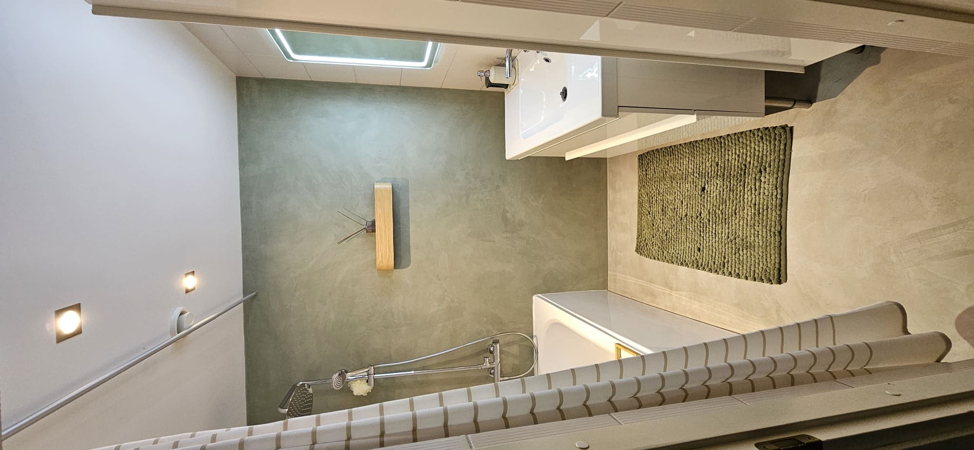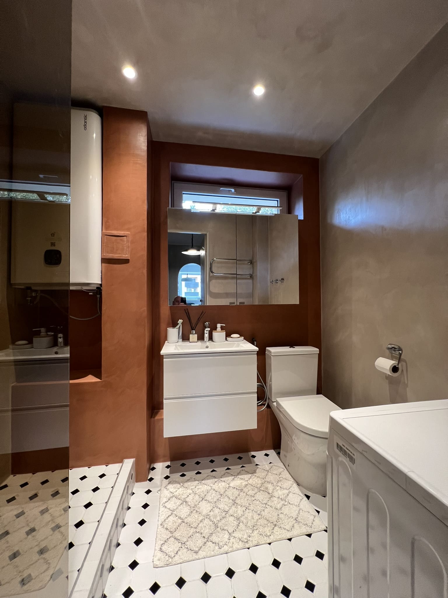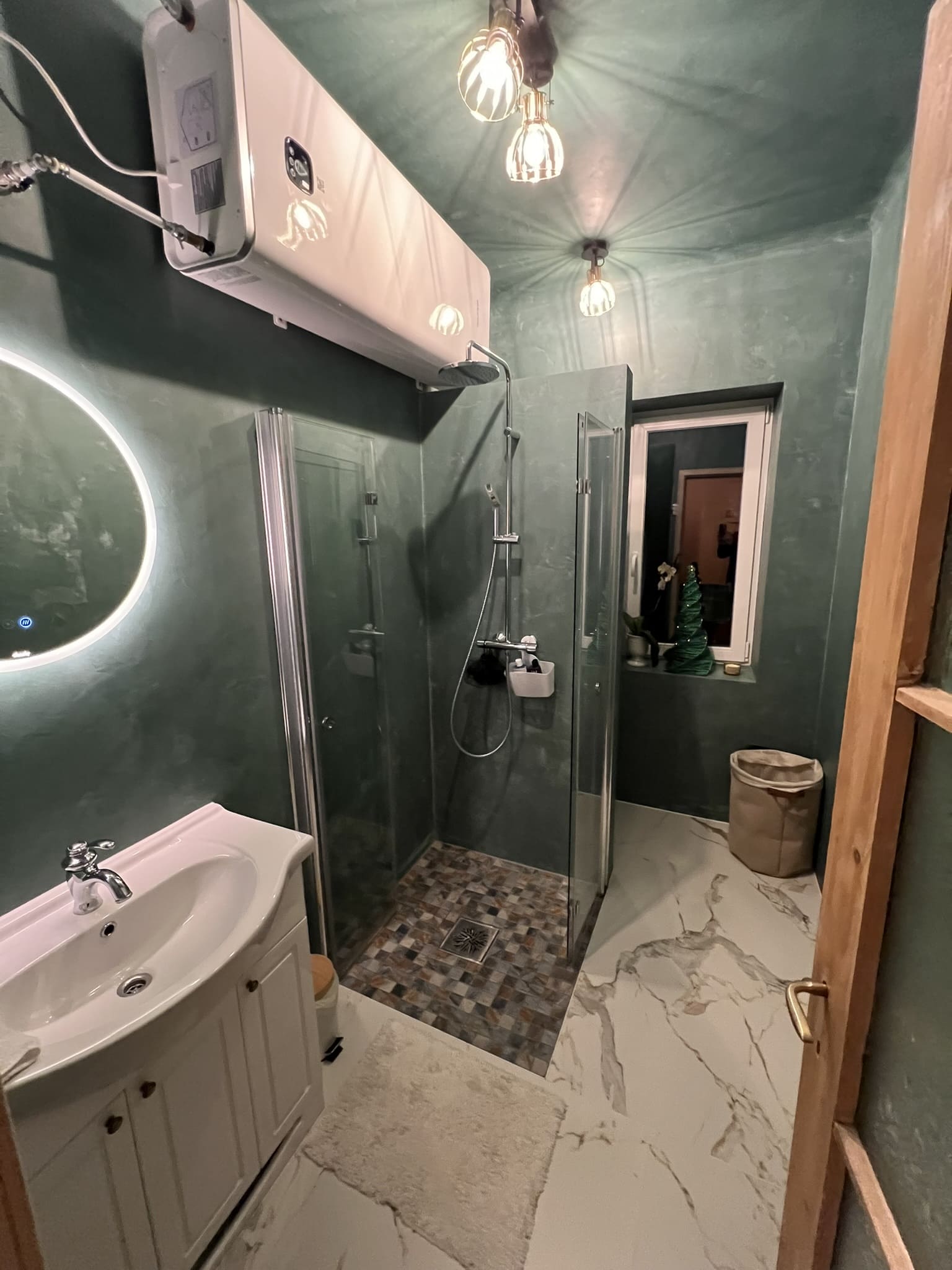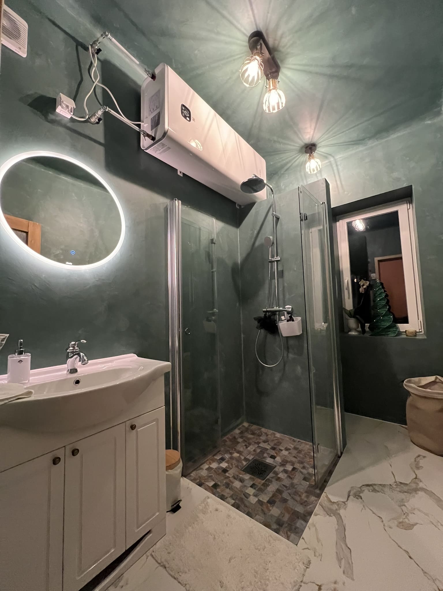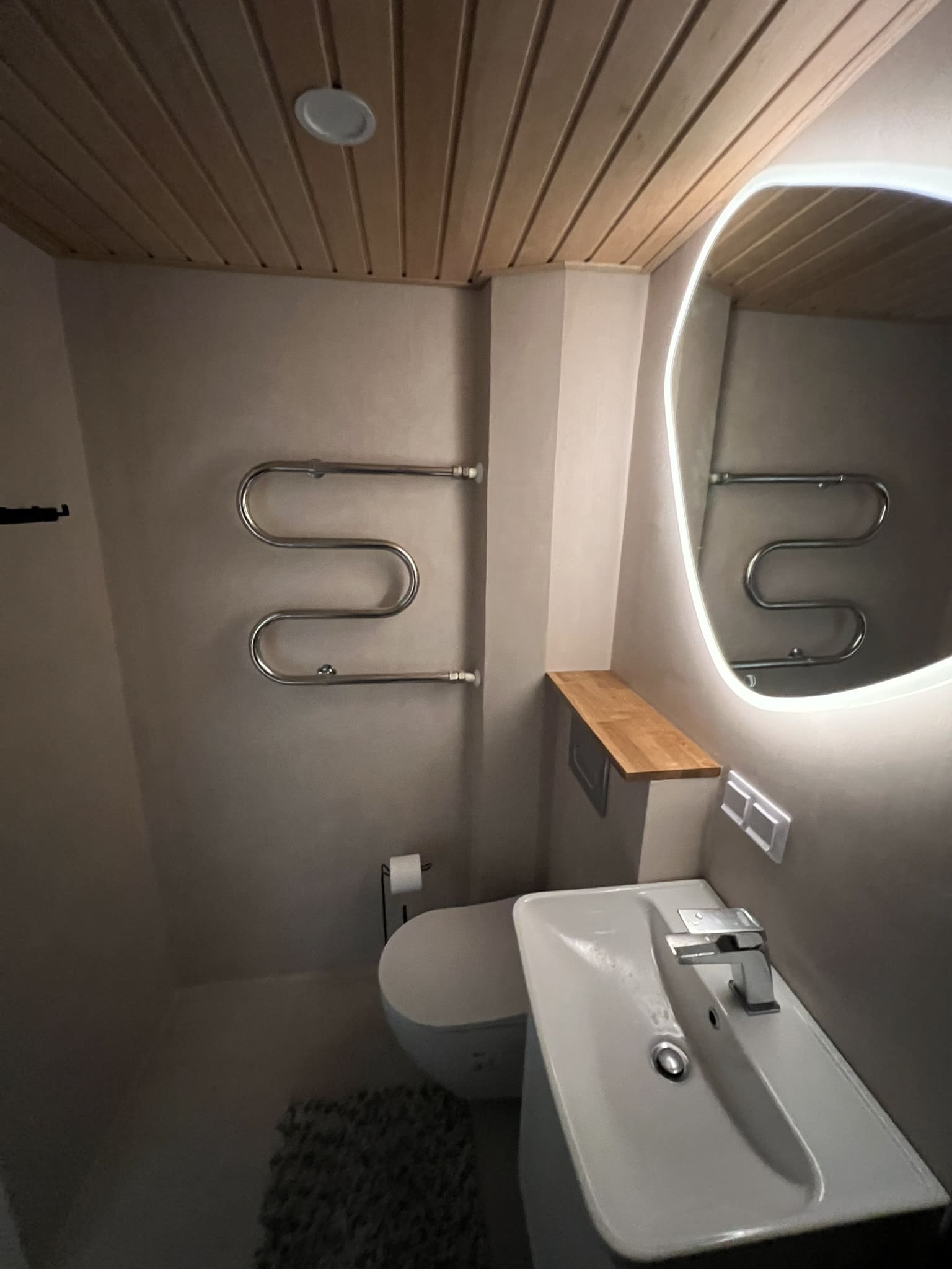 Kahe tooniga mikrotsemendi tööd on alati huvitavad. Mikrotsement paigaldati olemasoleva keraamilisele plaadile. Toon Basebeton Jade (sein), Basebeton Mouse ( põrand).