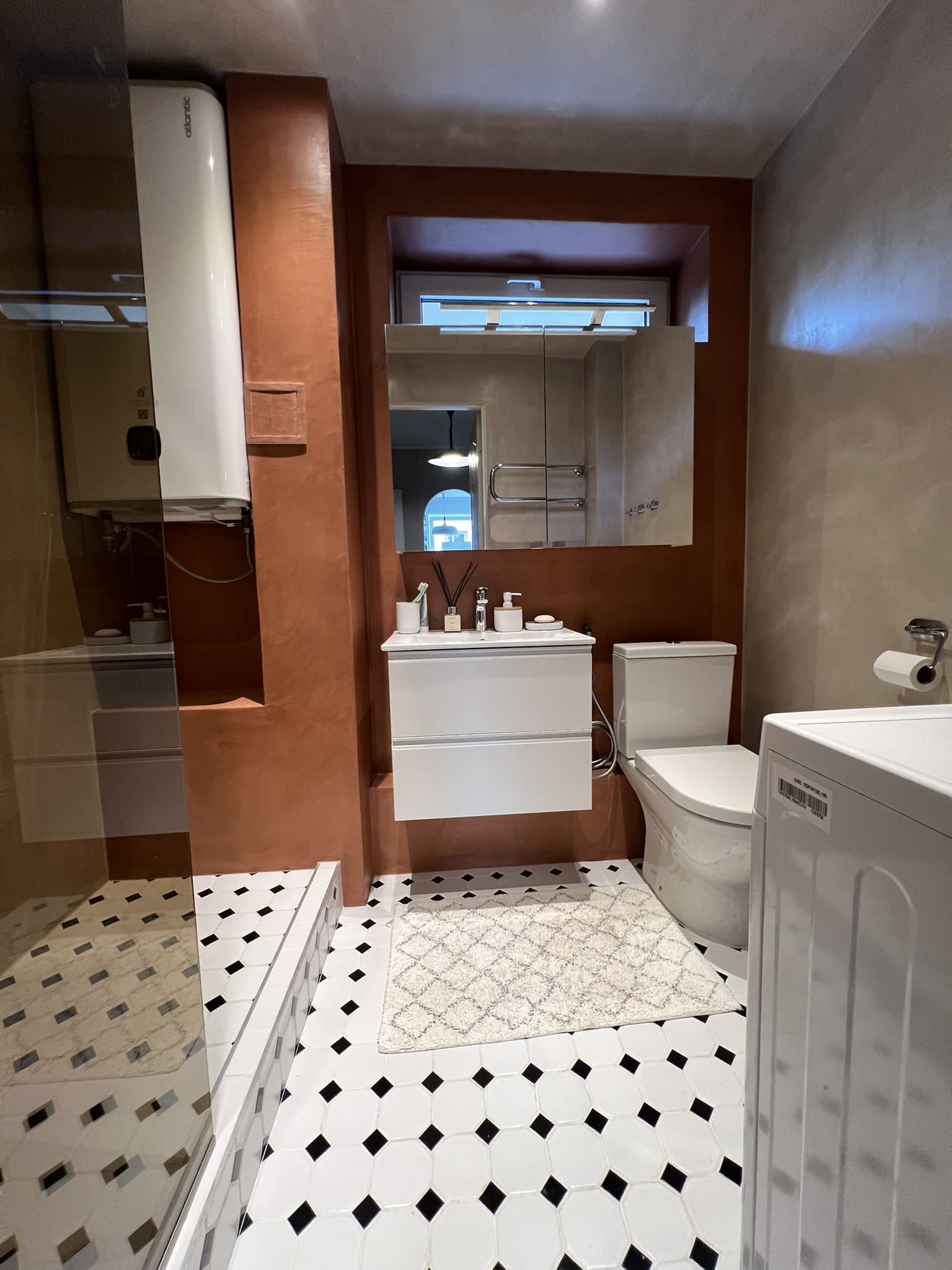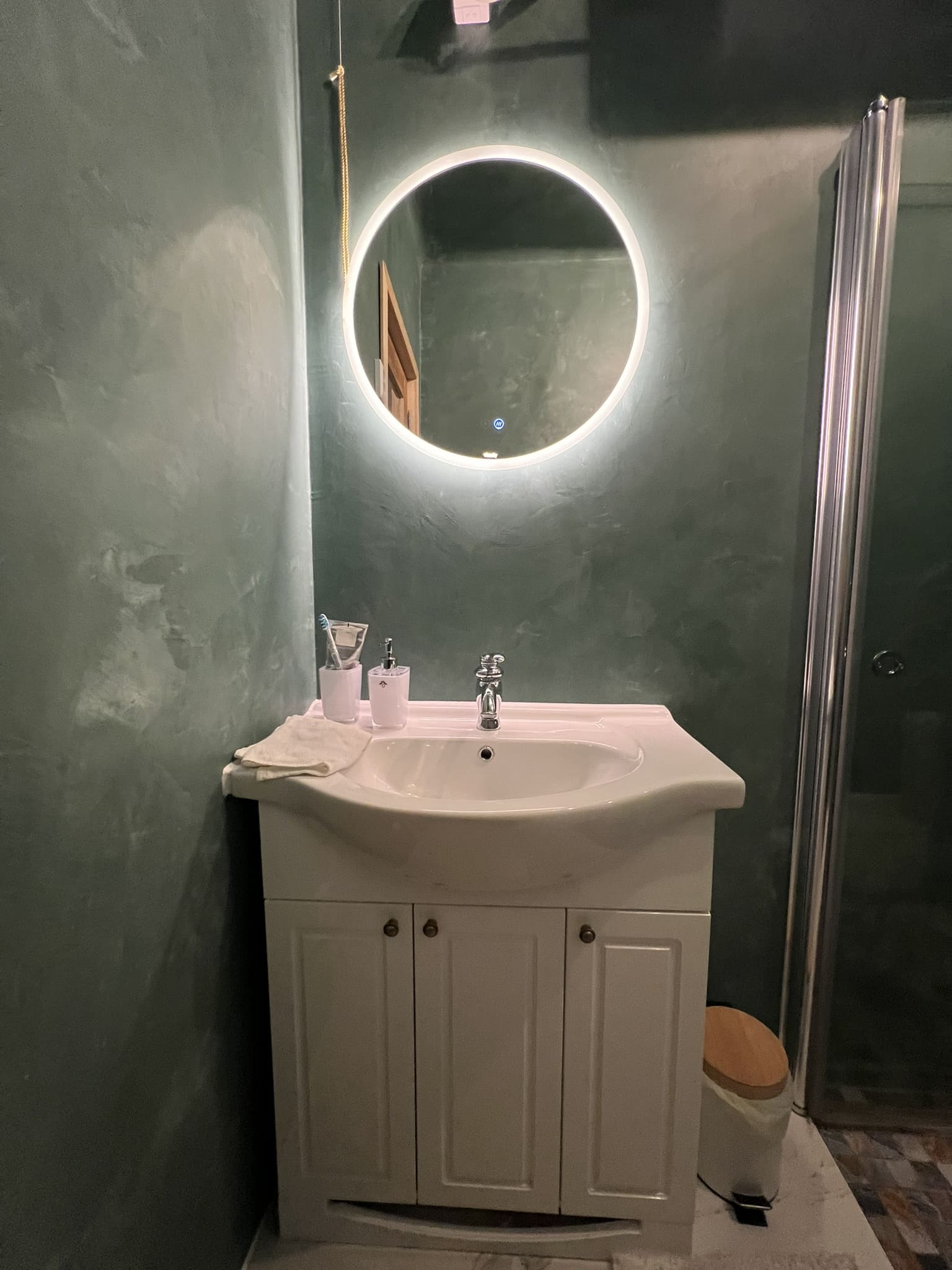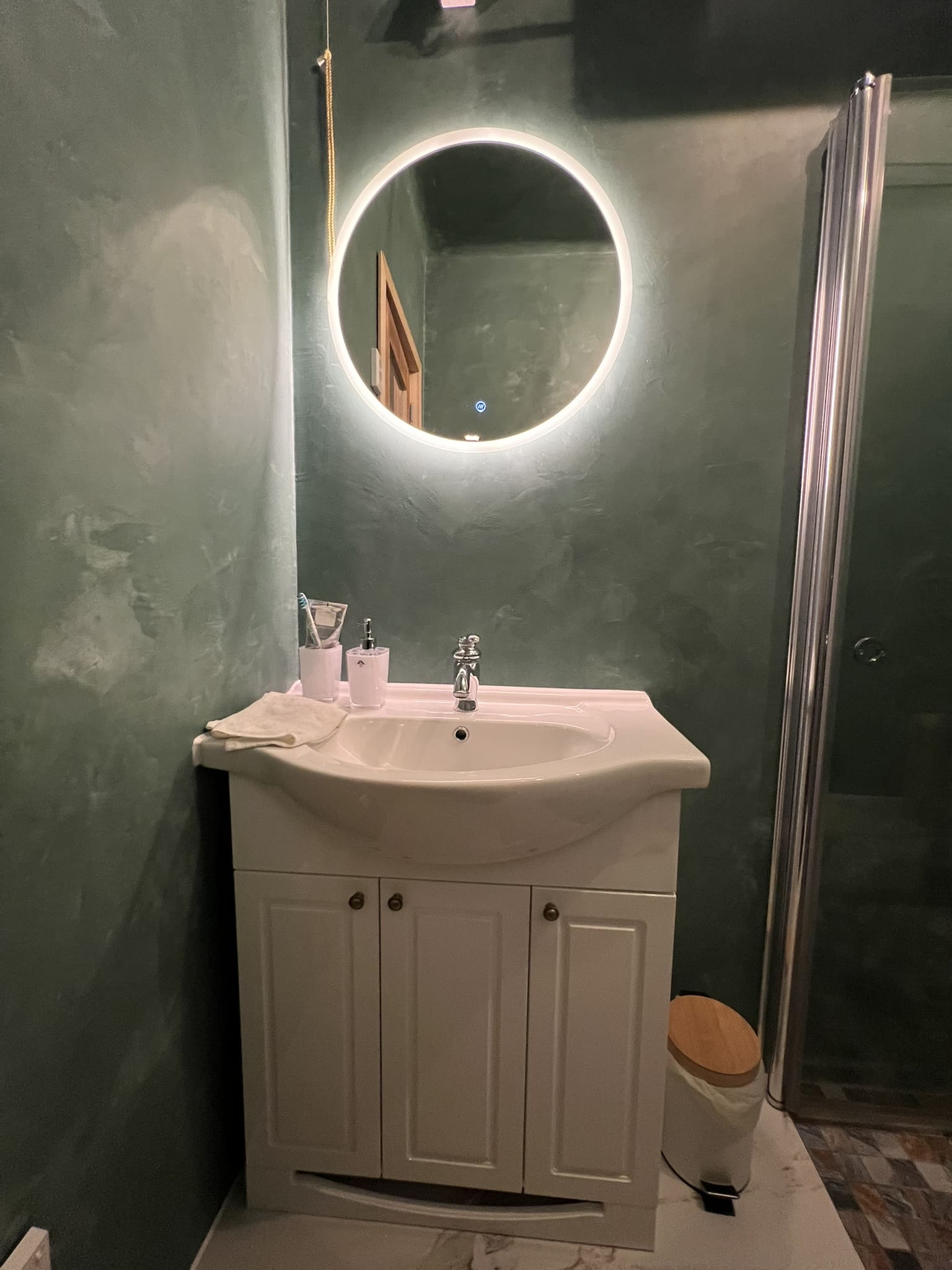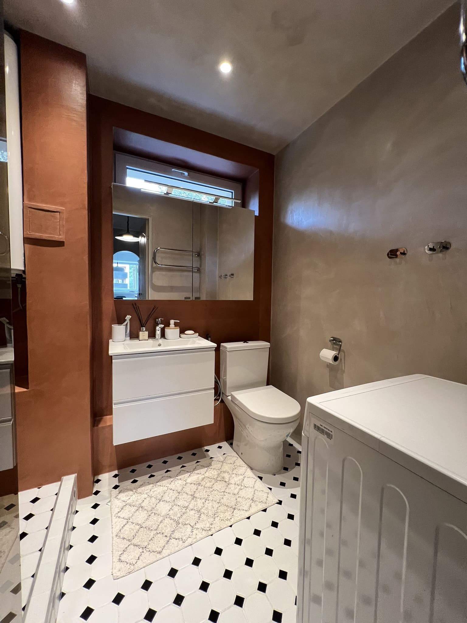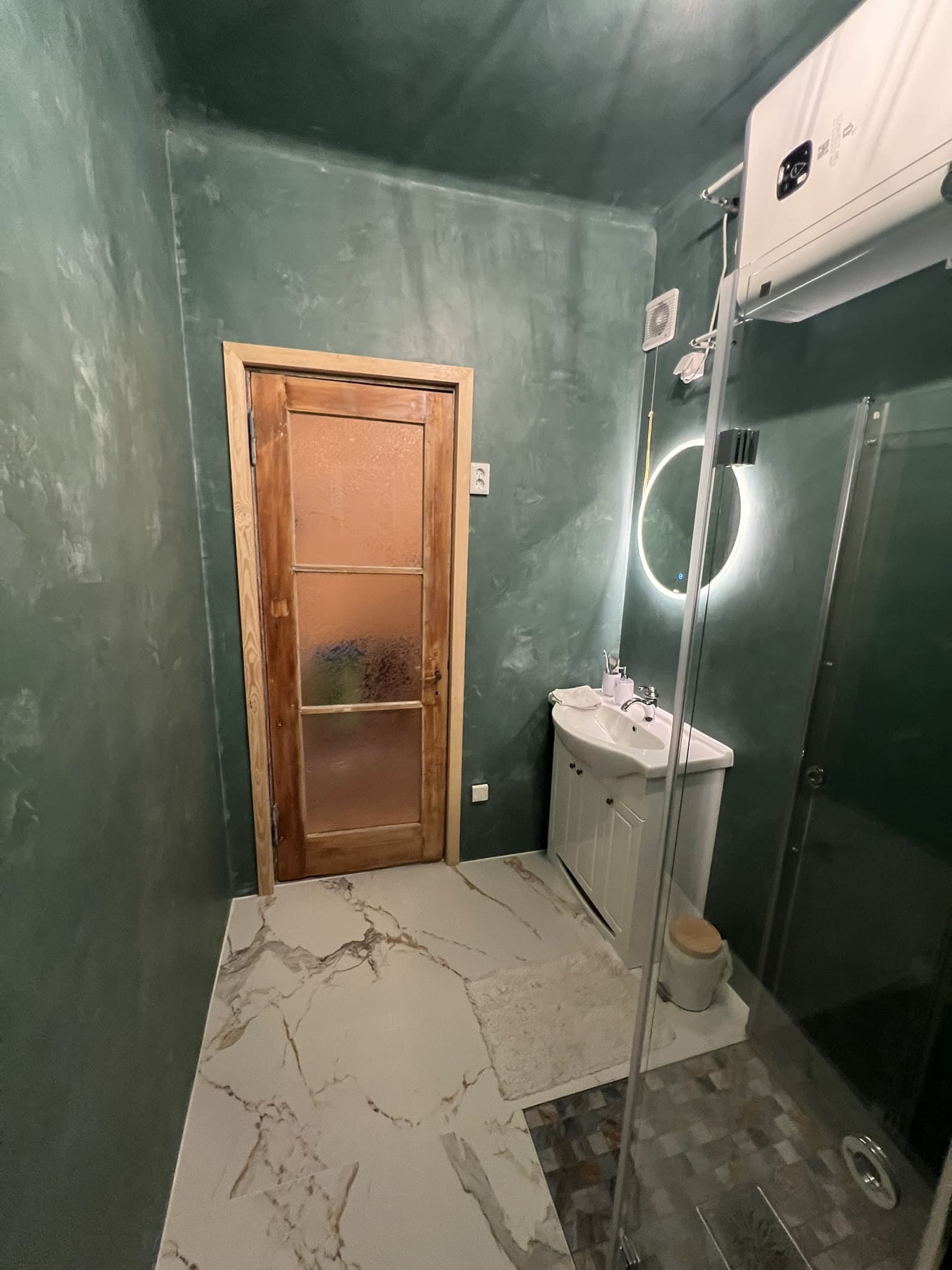 Kahe tooniga mikrotsemendi tööd on alati huvitavad. Mikrotsement paigaldati olemasoleva keraamilisele plaadile. Toon Basebeton Jade (sein), Basebeton Mouse ( põrand).