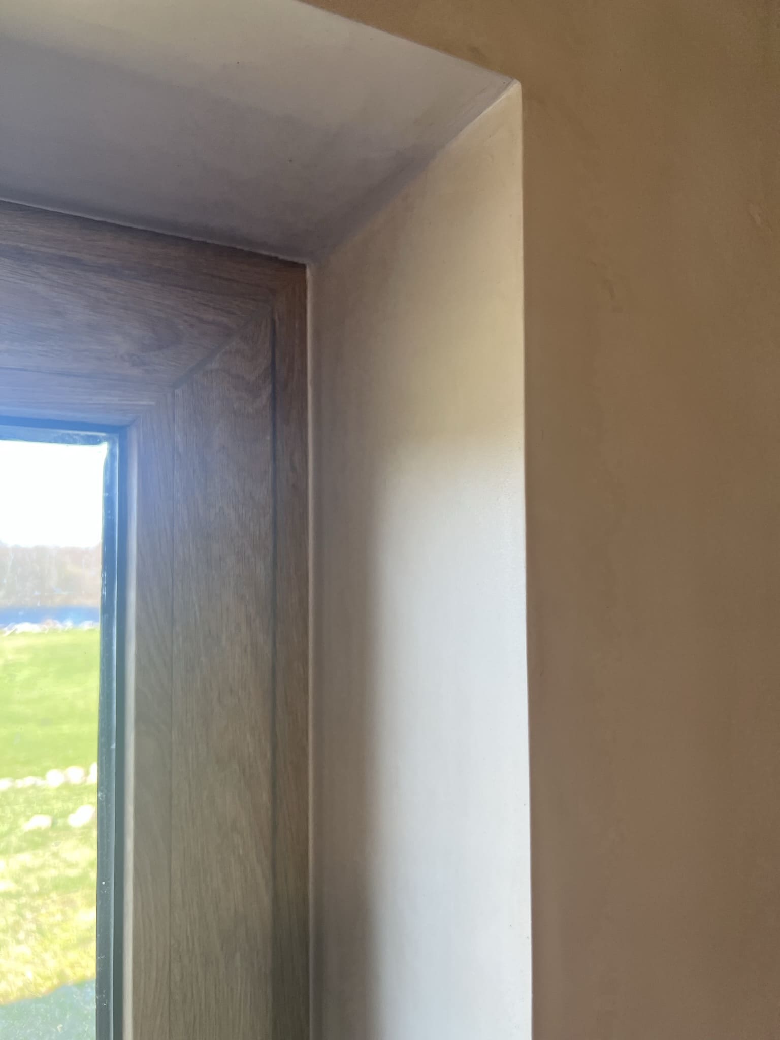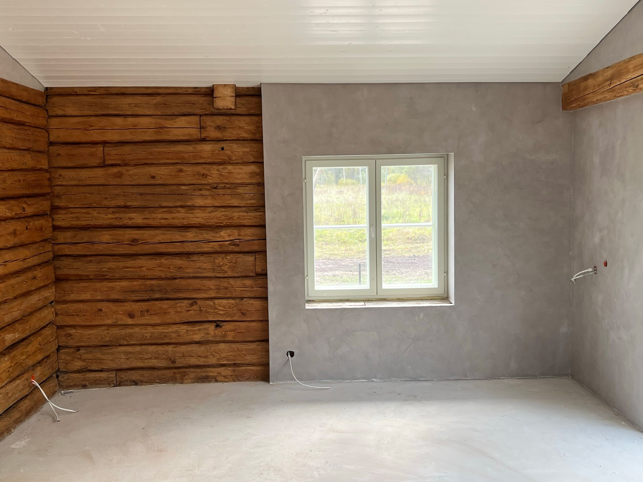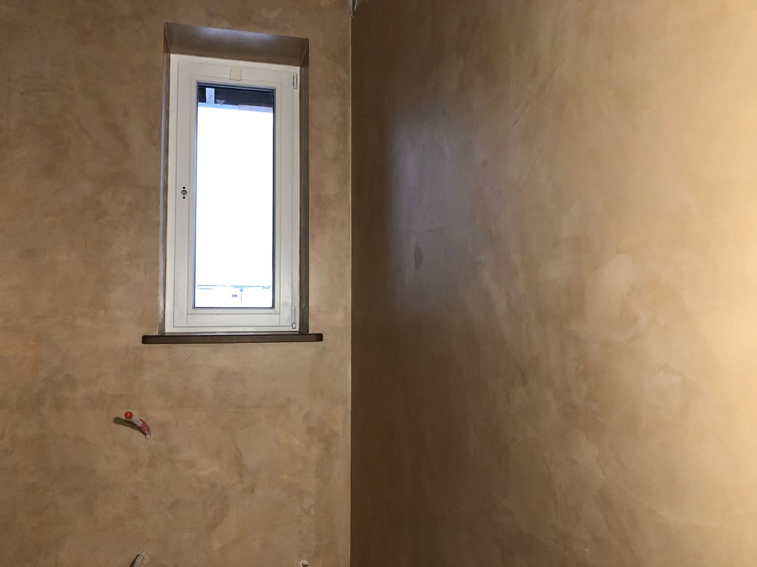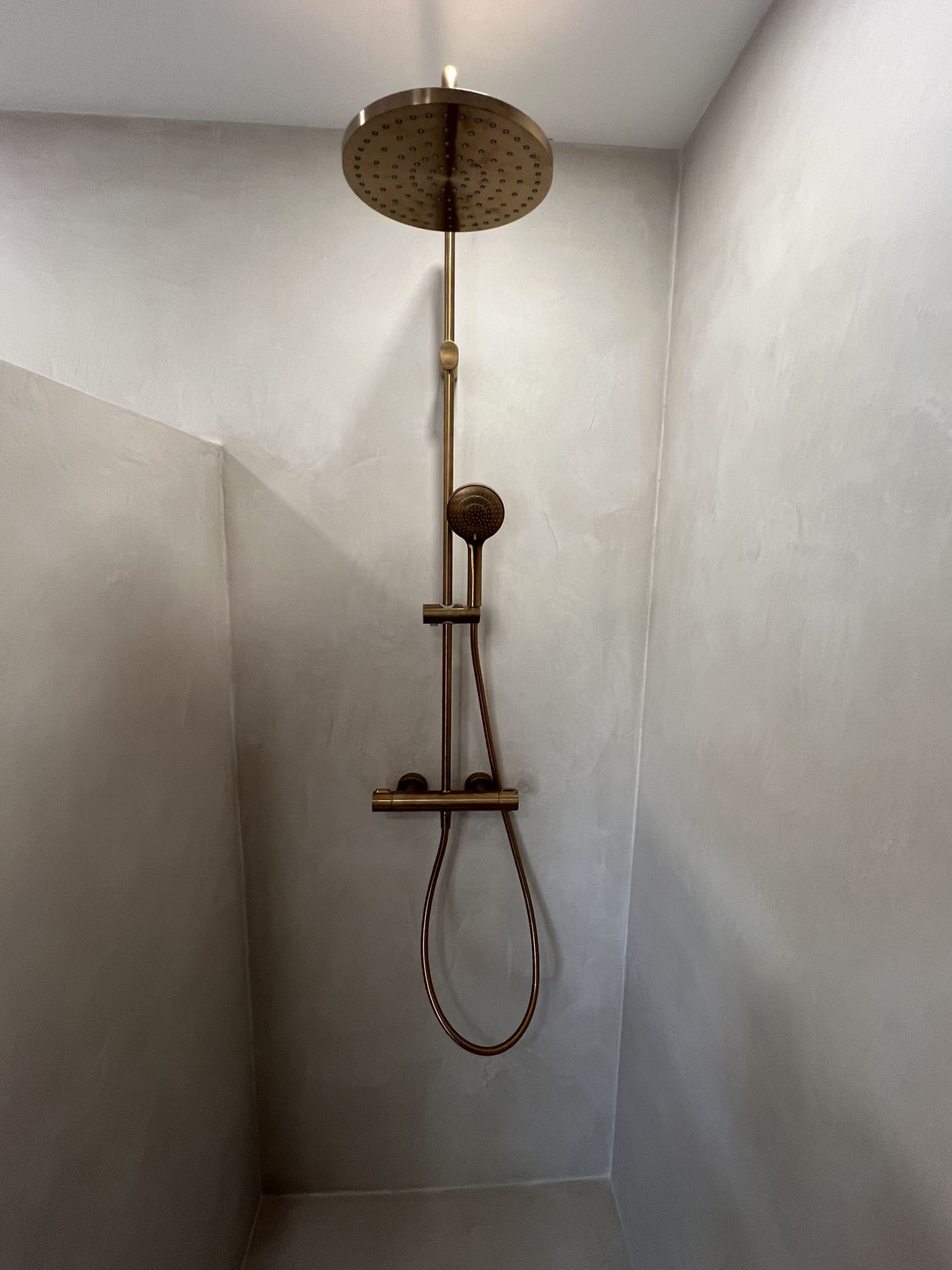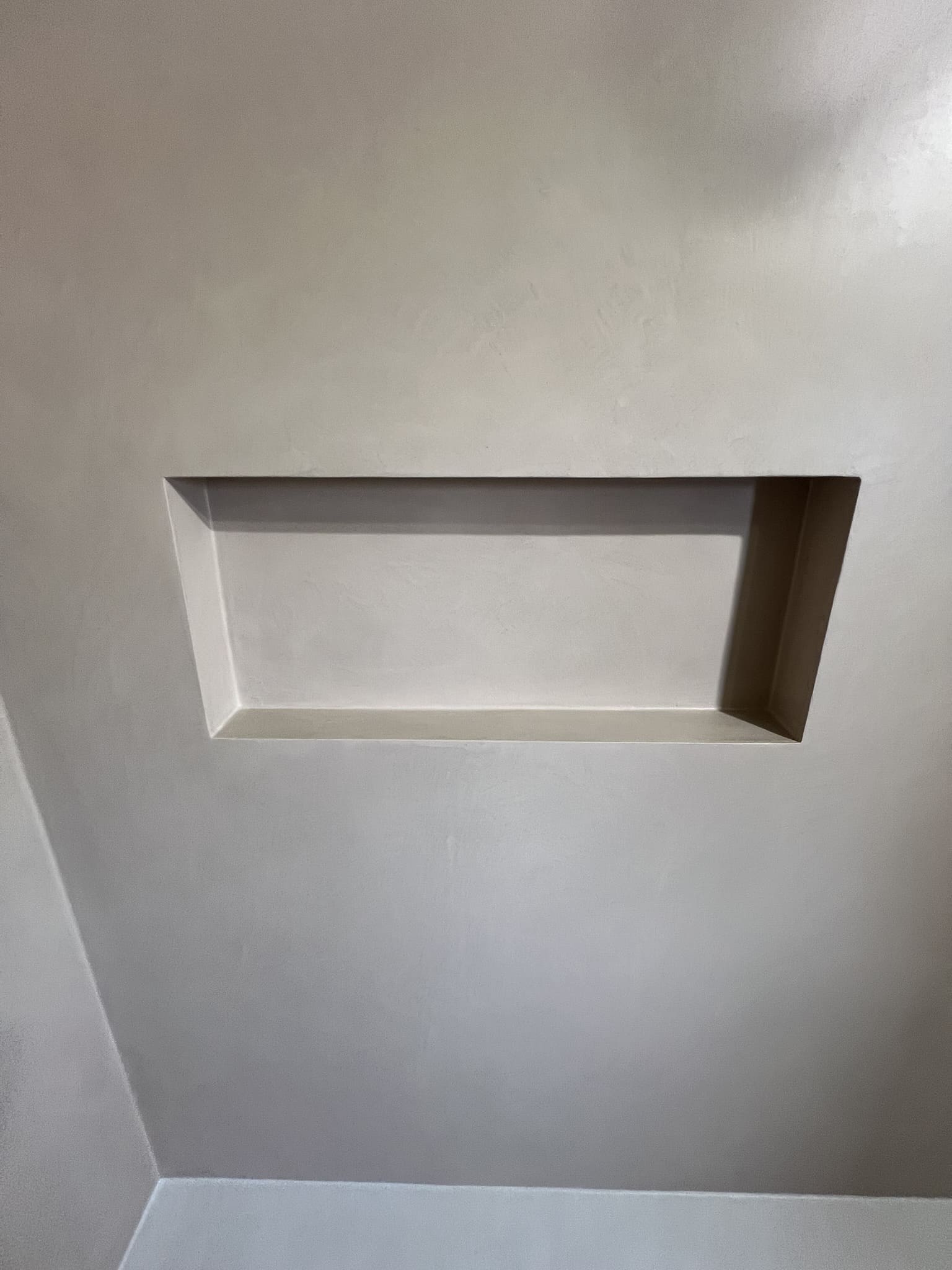 Mikrotsemendi tööd 5 m2 pindalaga duširuumis peale Teist Maailmasõda ehitatud eramajas. Vanade majade puhul nagu ikka pole seinad päris sirged, siis lõhuti välja vana krohvitud seinad ja krohviti armeeringuga uued sirged seinad. Lae kõrgus on 3,2 m, mille ääred on kaarjad. Nii lakke kui seinatele kanti mikrotsement. Toon: Torquesa.
