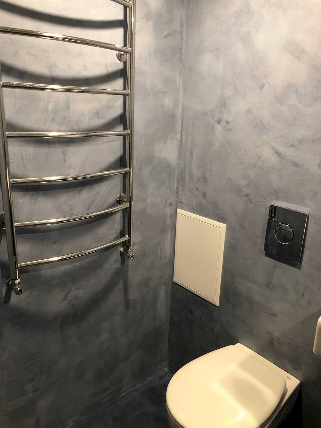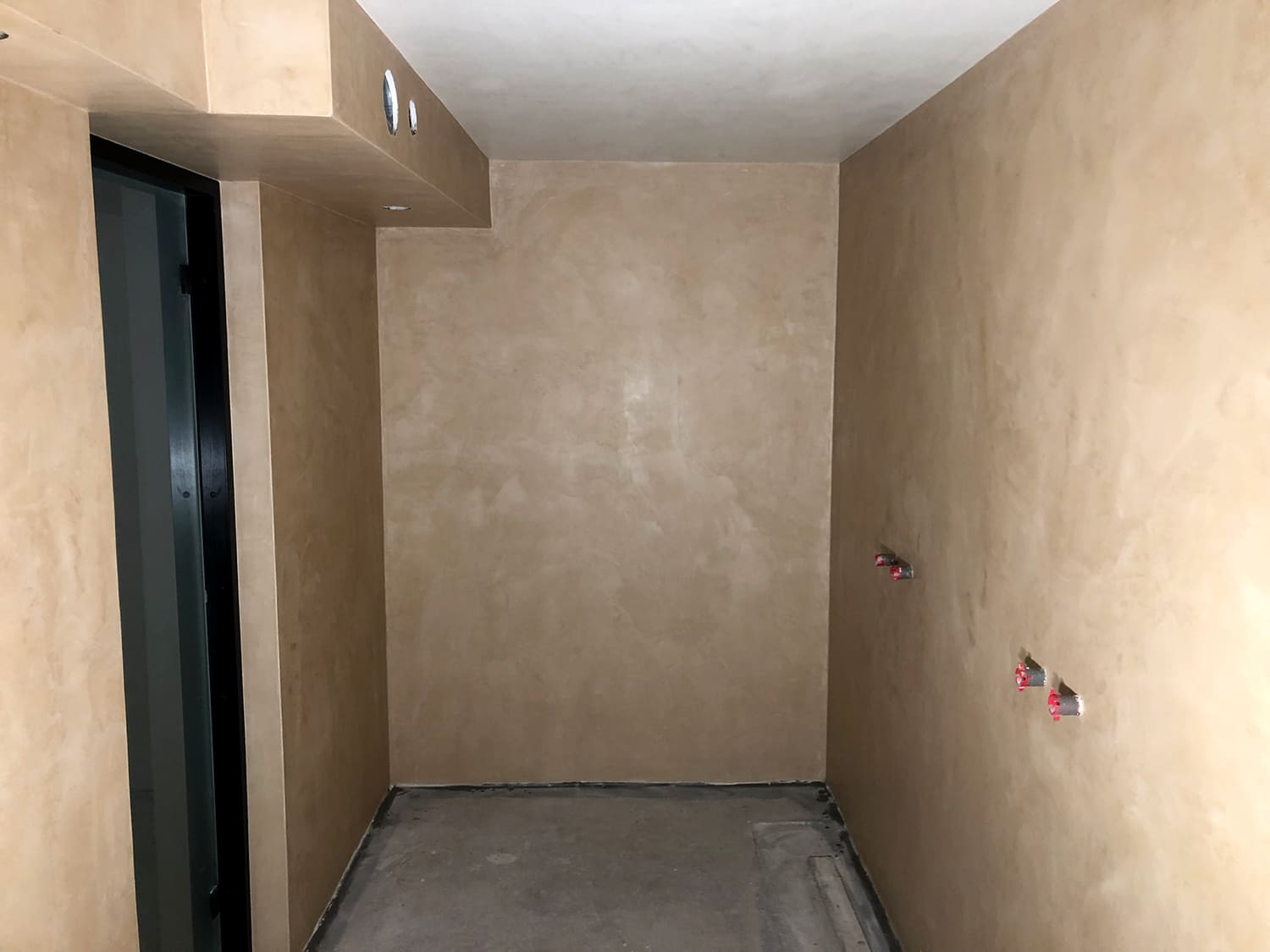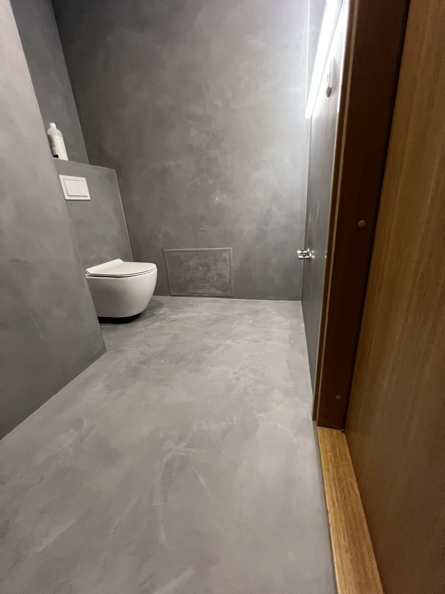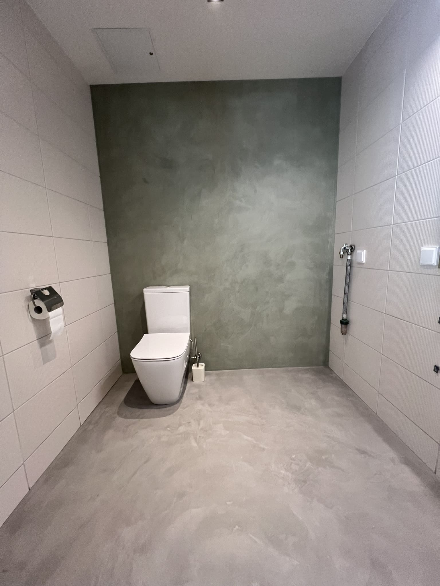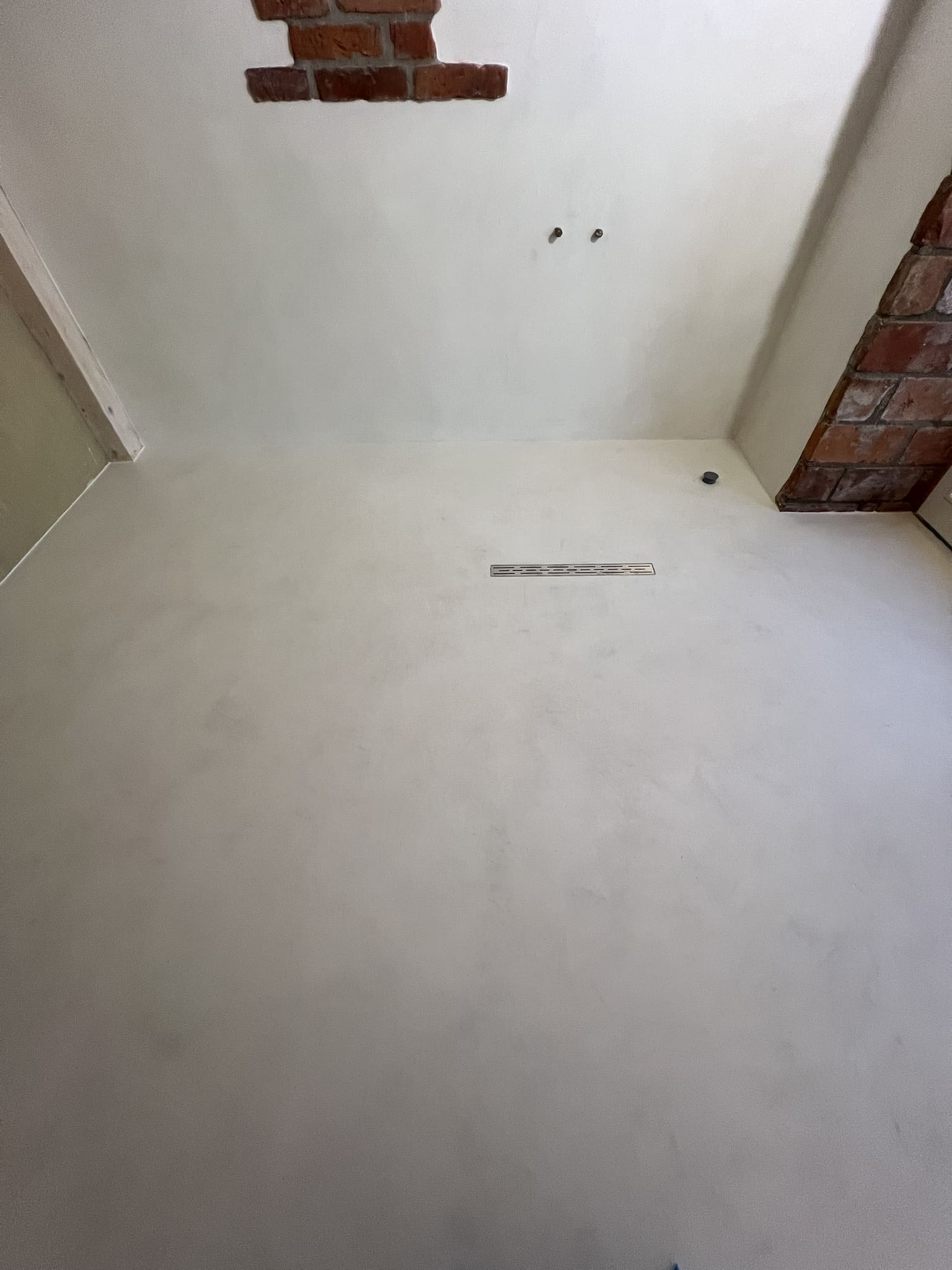 Mikrotsemendiga saab katta ka hooldusluuke, et see muu taustaga ühilduks. Mikrotsement kinnitub hästi metalli külge ja muude materjalide külge samuti. Sel objektil oli tarvis seinas olev avaus kinni katta enne mikrotsemendi kandmis pindadele.