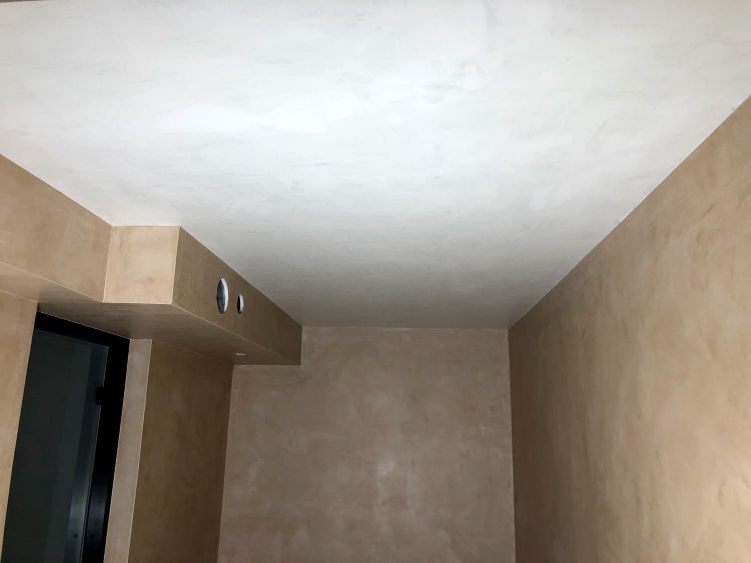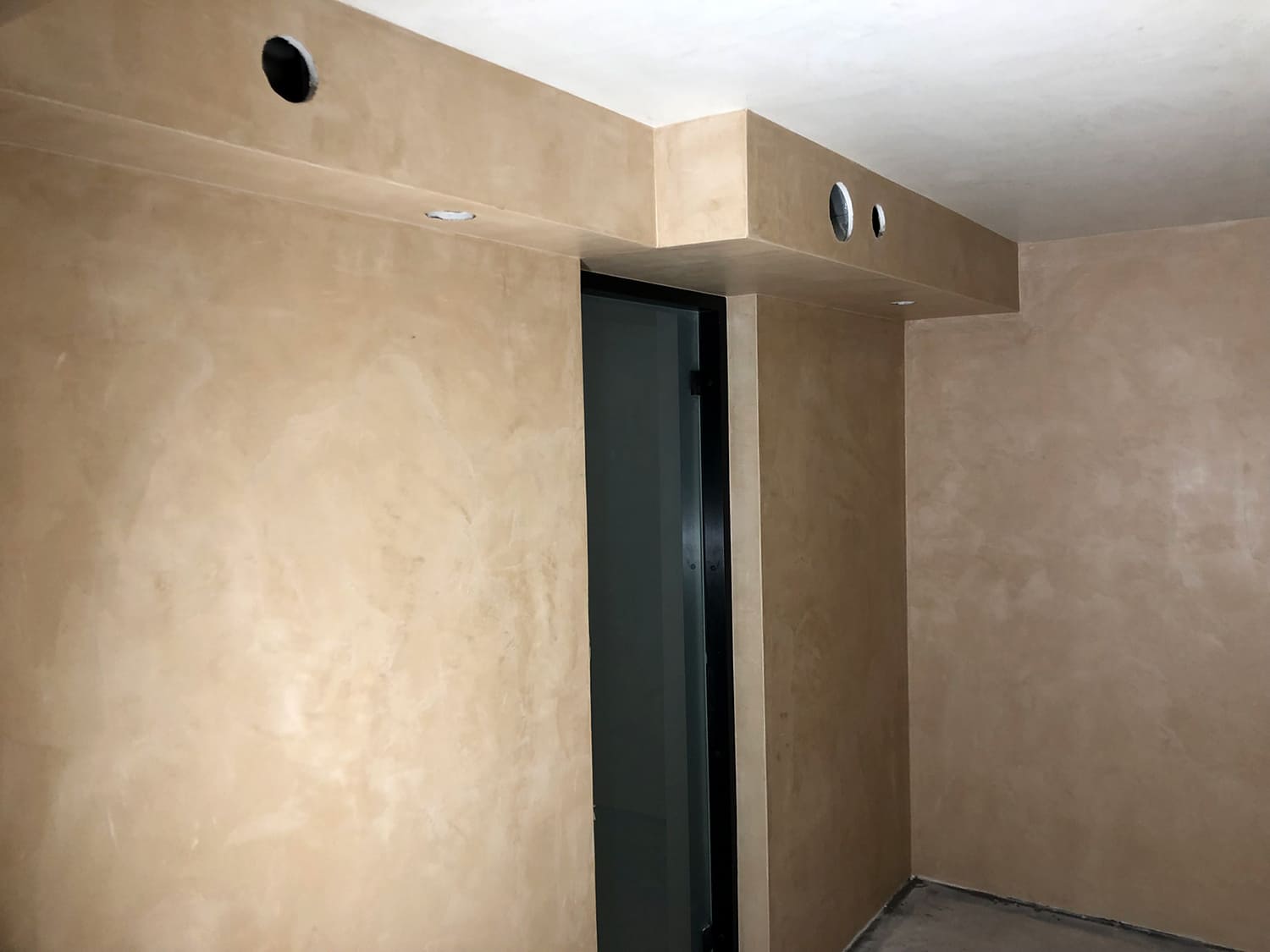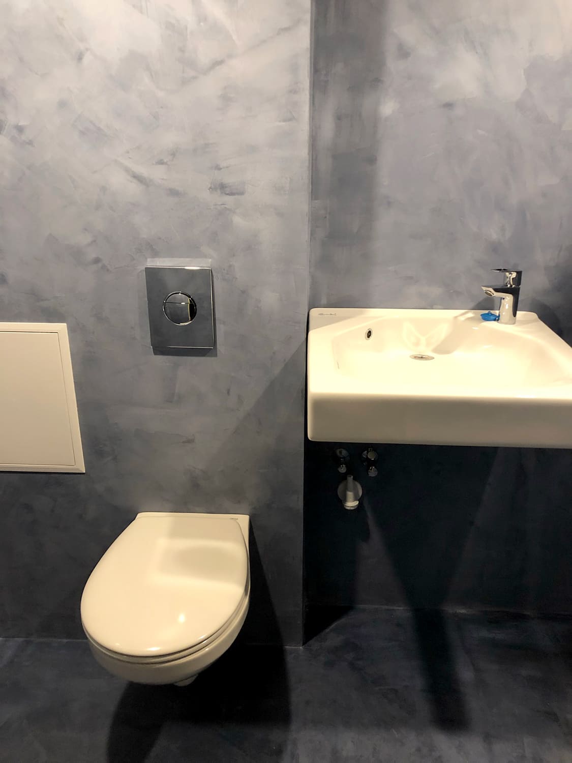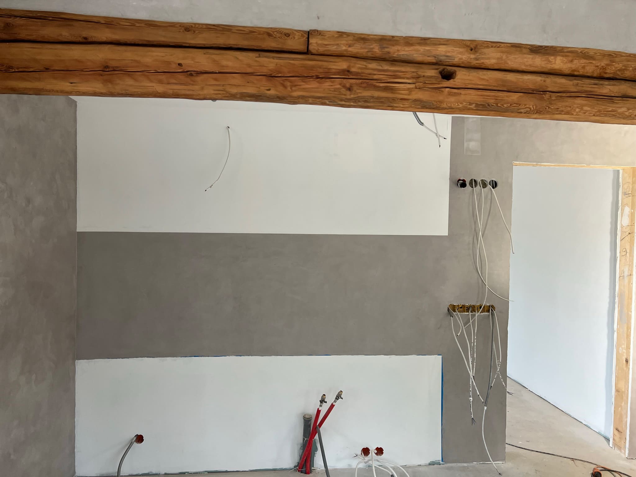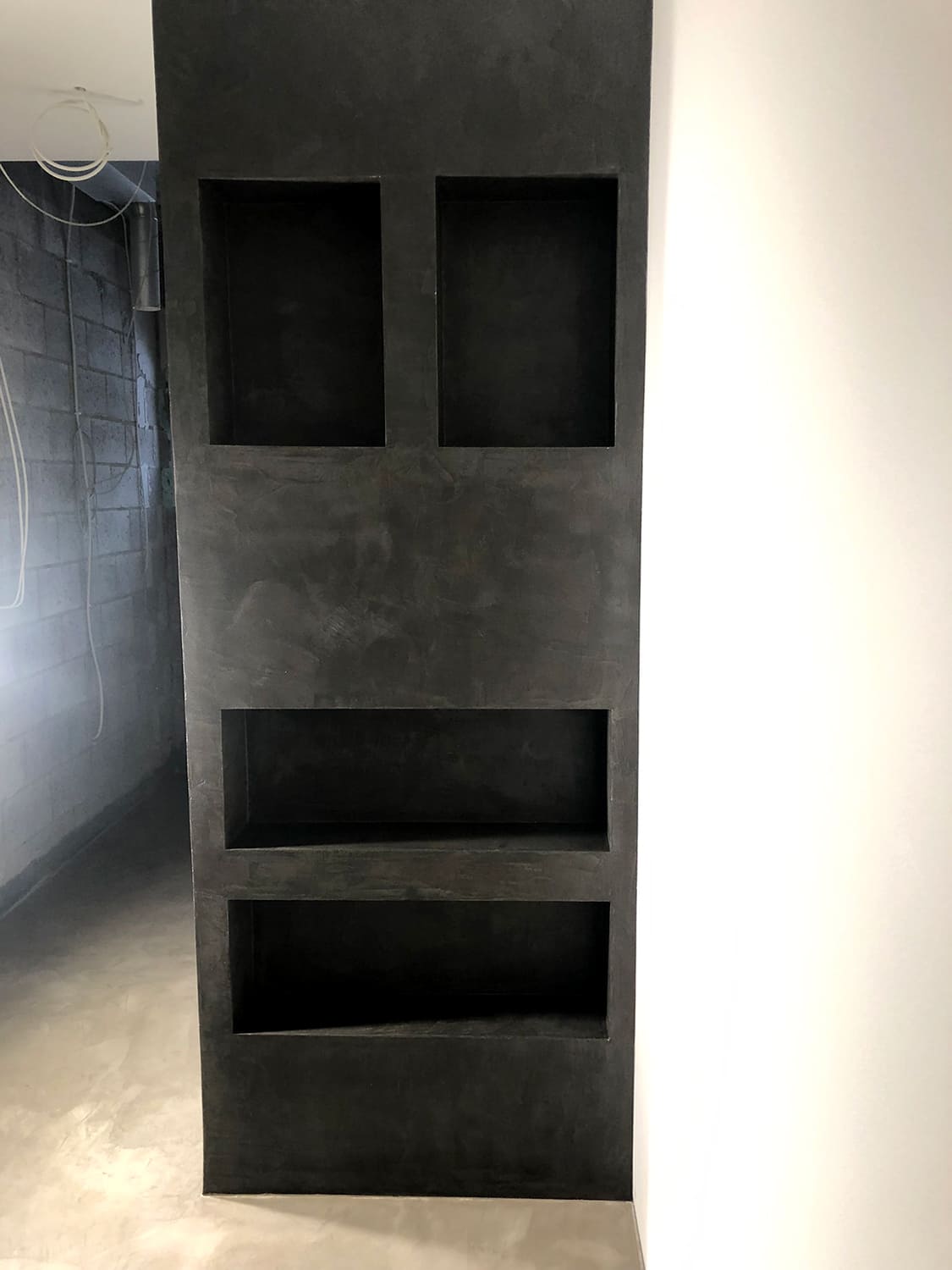 Mikrotsemendiga saab katta ka hooldusluuke, et see muu taustaga ühilduks. Mikrotsement kinnitub hästi metalli külge ja muude materjalide külge samuti. Sel objektil oli tarvis seinas olev avaus kinni katta enne mikrotsemendi kandmis pindadele.