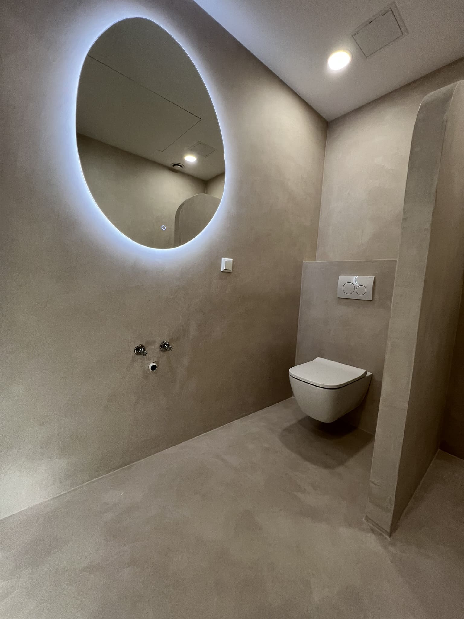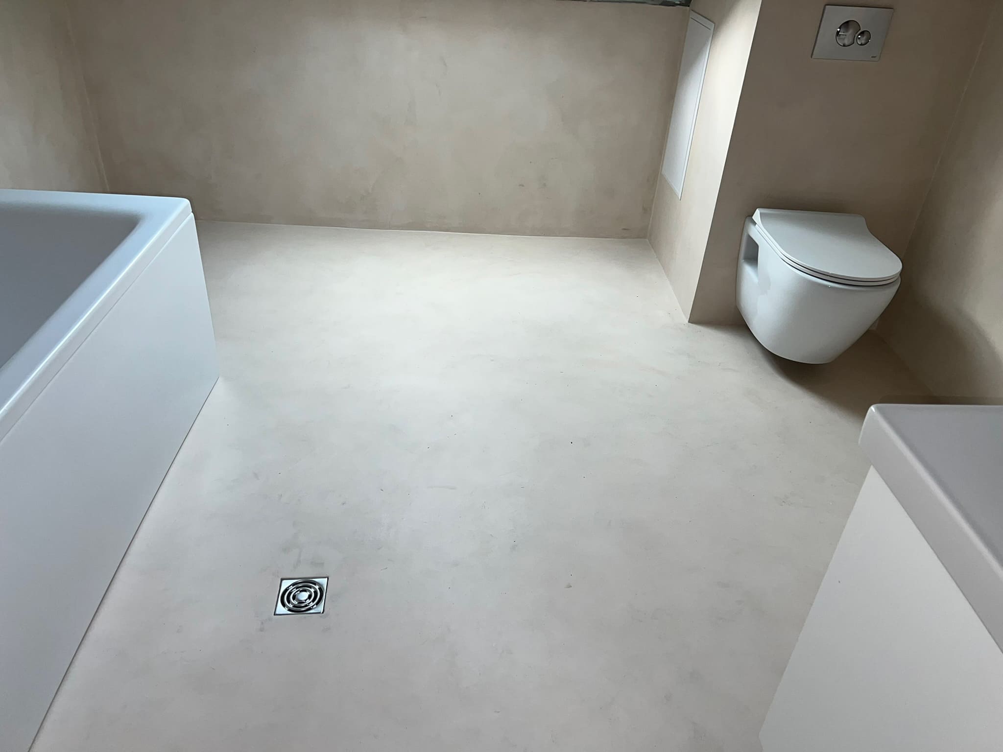 Mikrotsement olemasolevale keraamilisele plaadile, lisaks santehnika paigaldus. Toon Basebeton Oat.