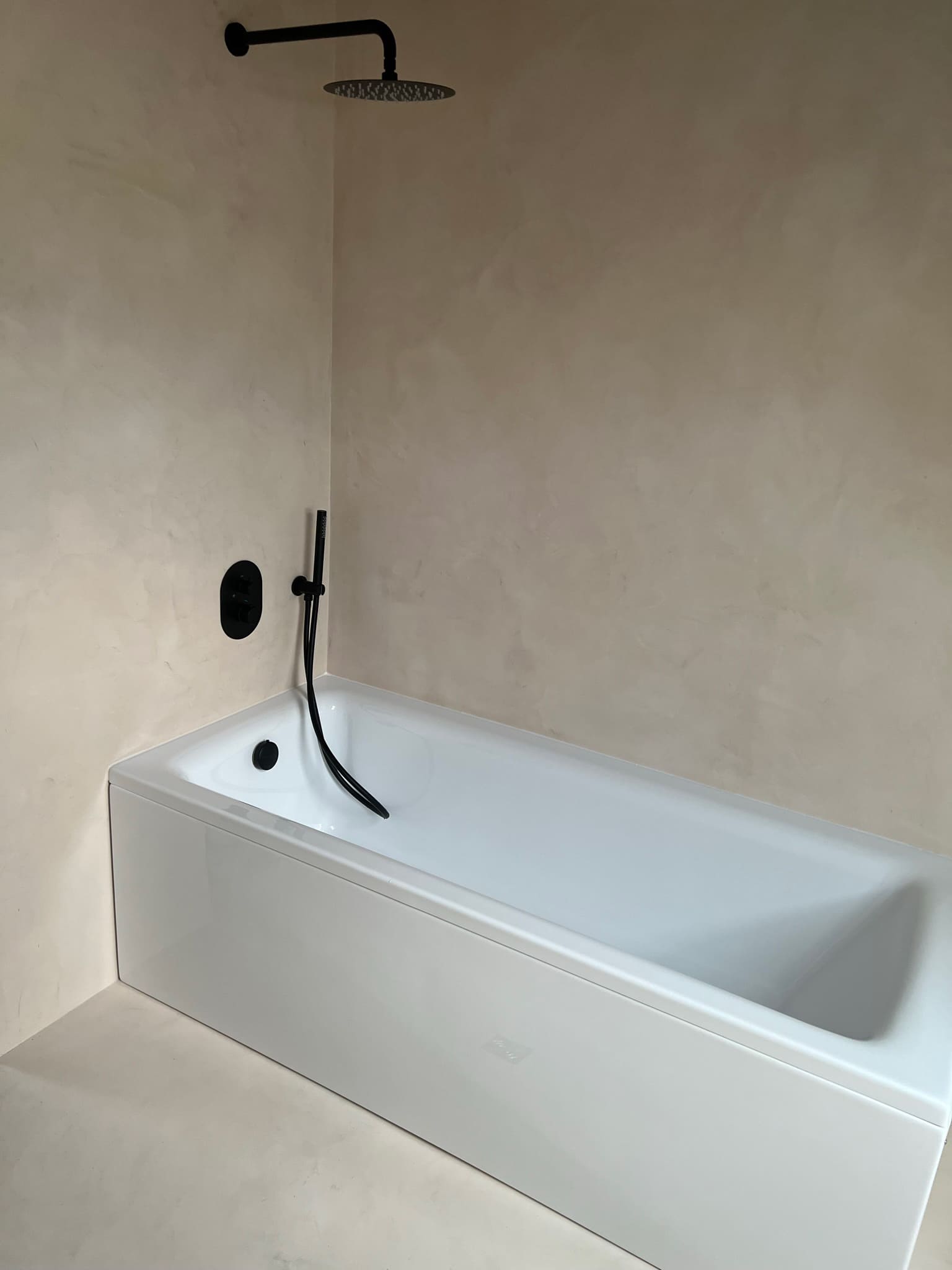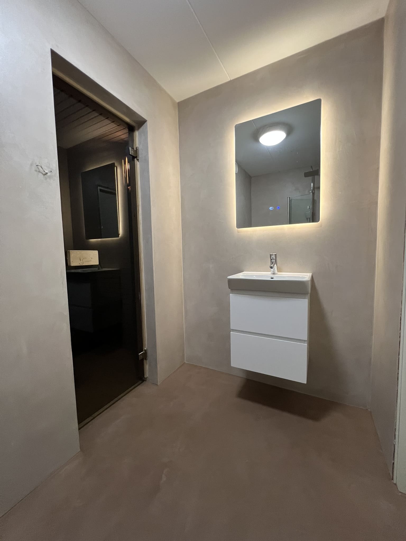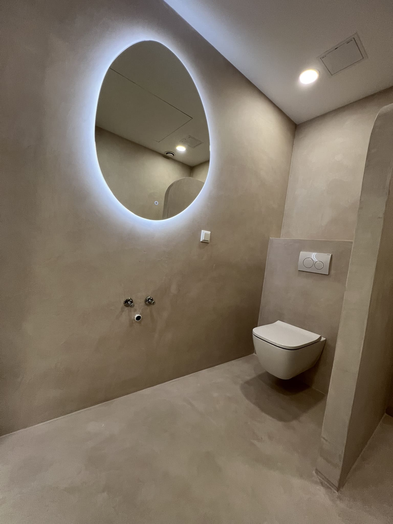 Mikrotsement keraamilisele plaadile. Antud töö puhul sai kasutada kahte tooni, põrandalale ( Basebeton Mocca) ja seinad ( Basebeton Duhe). Abiks olime ka santehnika paigaldamisel!