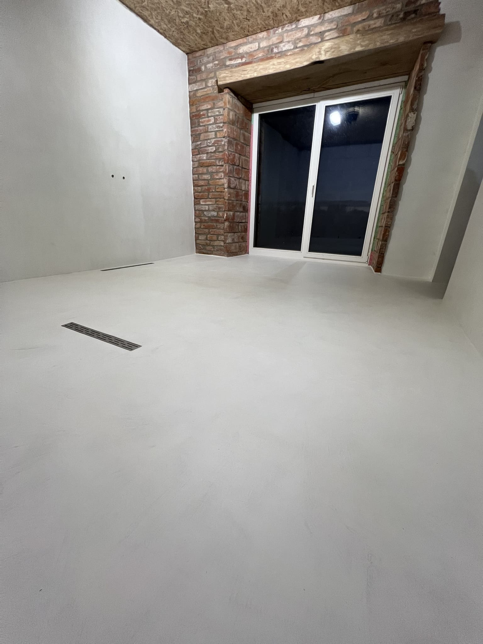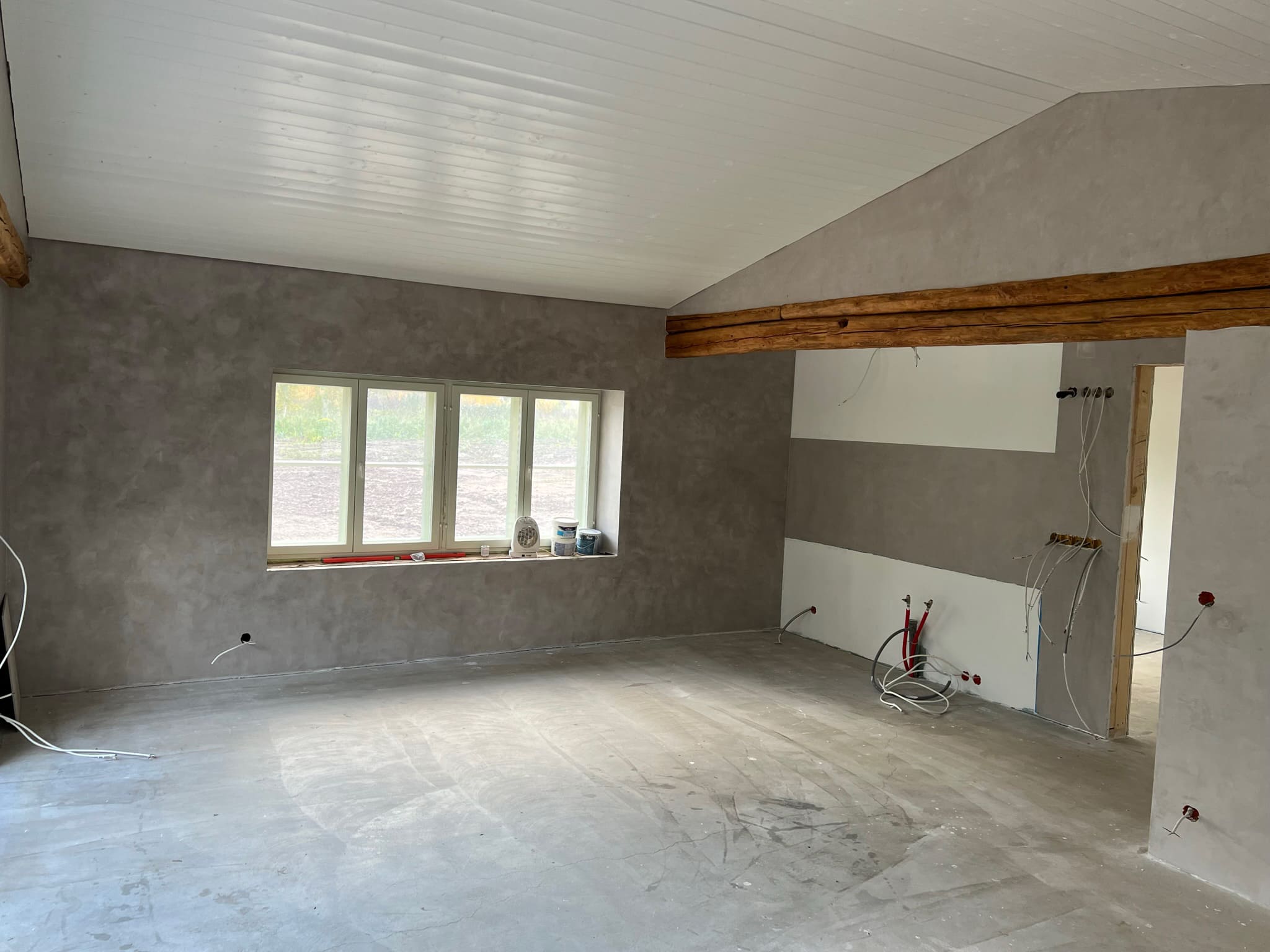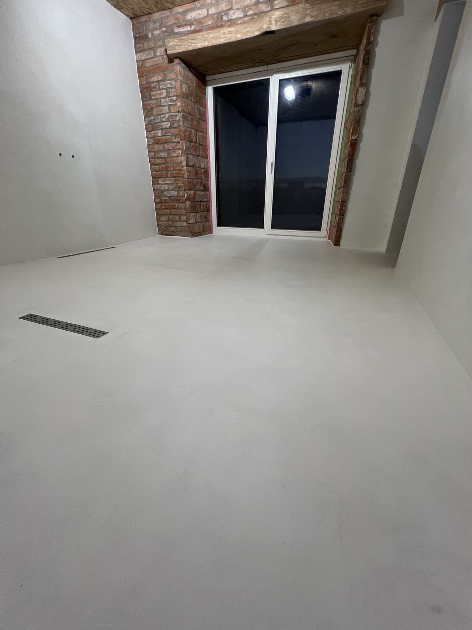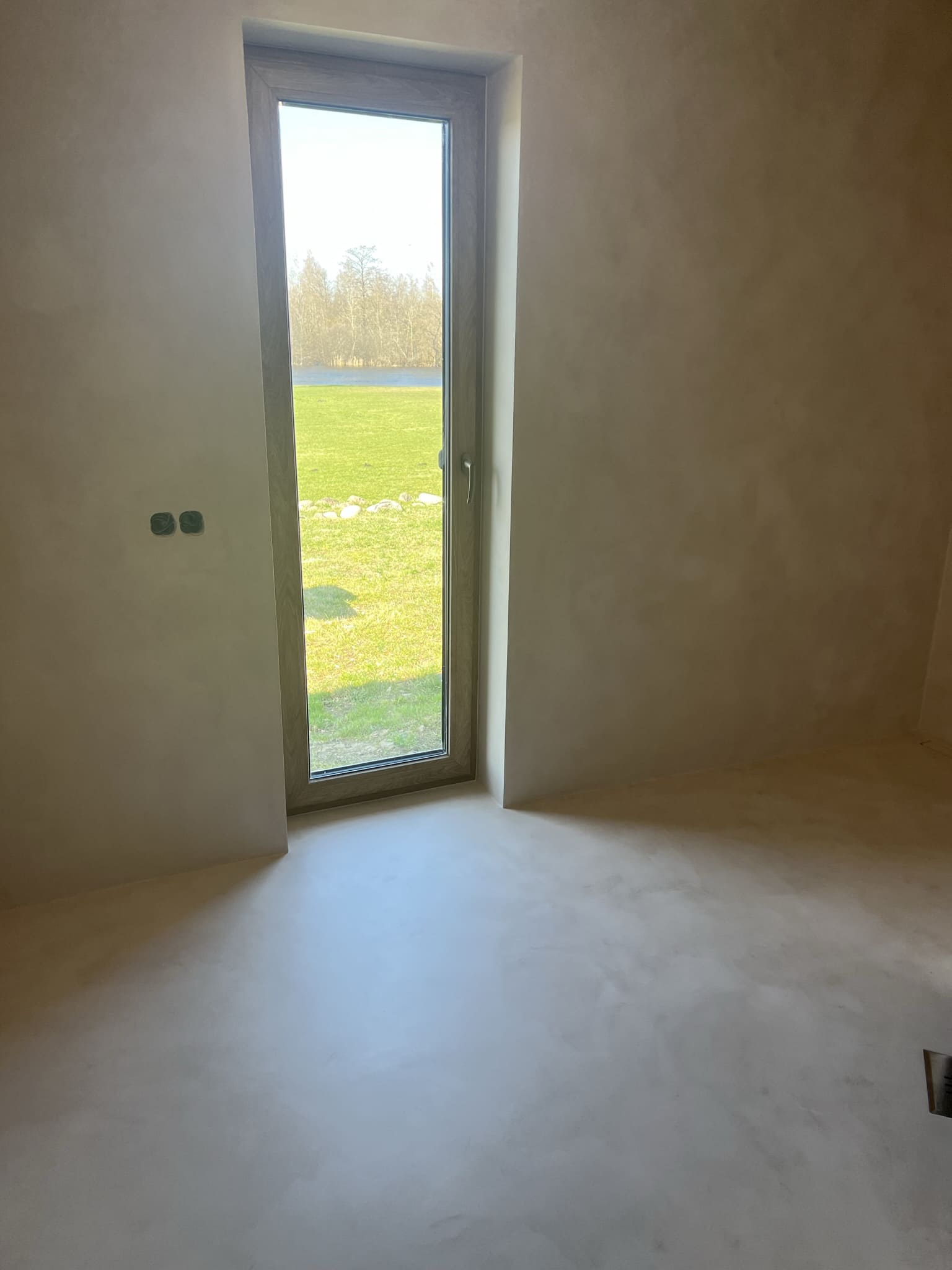 Mikrotsemendi tööd 16 m2 pindlaga duširuumis eramajas. Antud töö on tehtud kahe tooniga, põrand ( Basebeton Bright), seinad (Basebeton Dust). Kuna tegemist äsja valminud majaga, siis krohviti seinad areeringuga enne mikrotsemendi paigaldamist üle.
