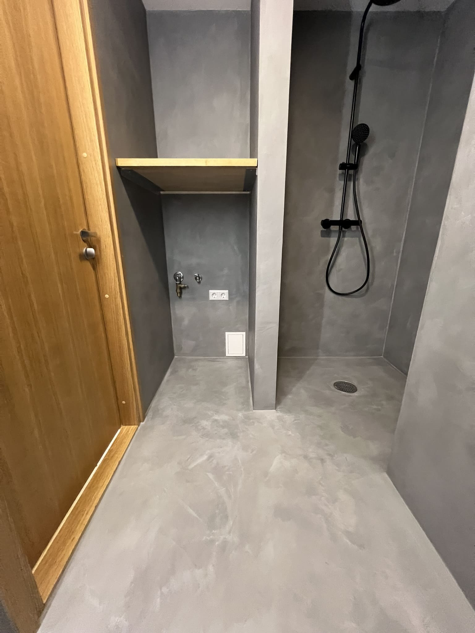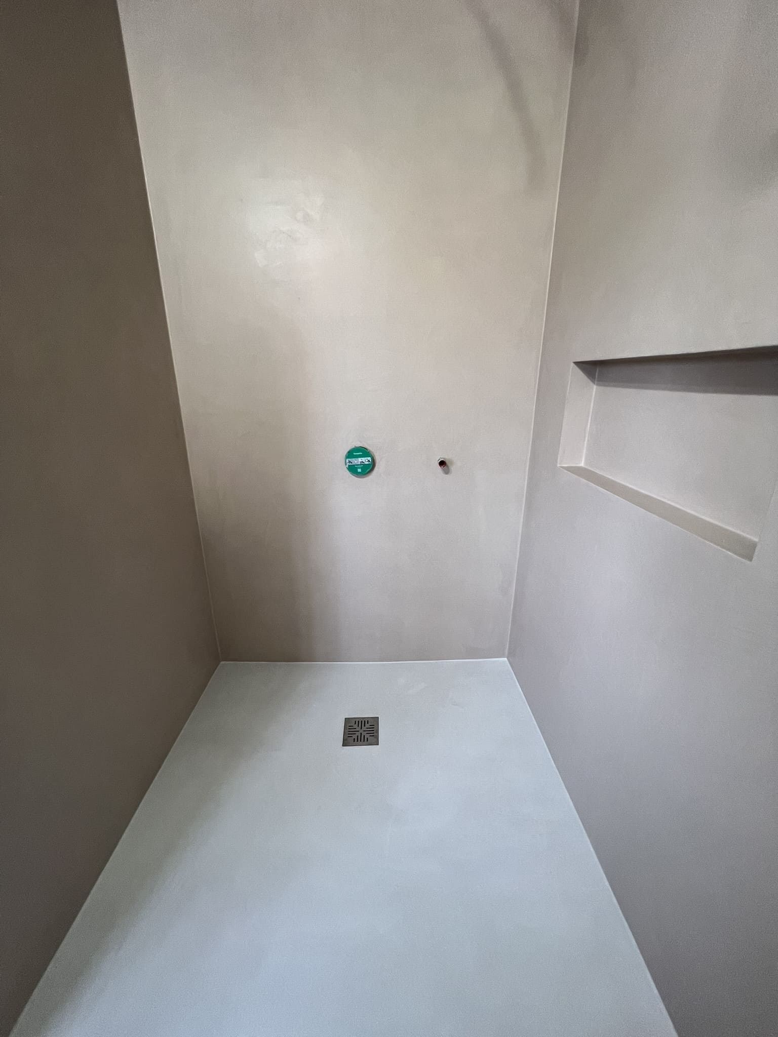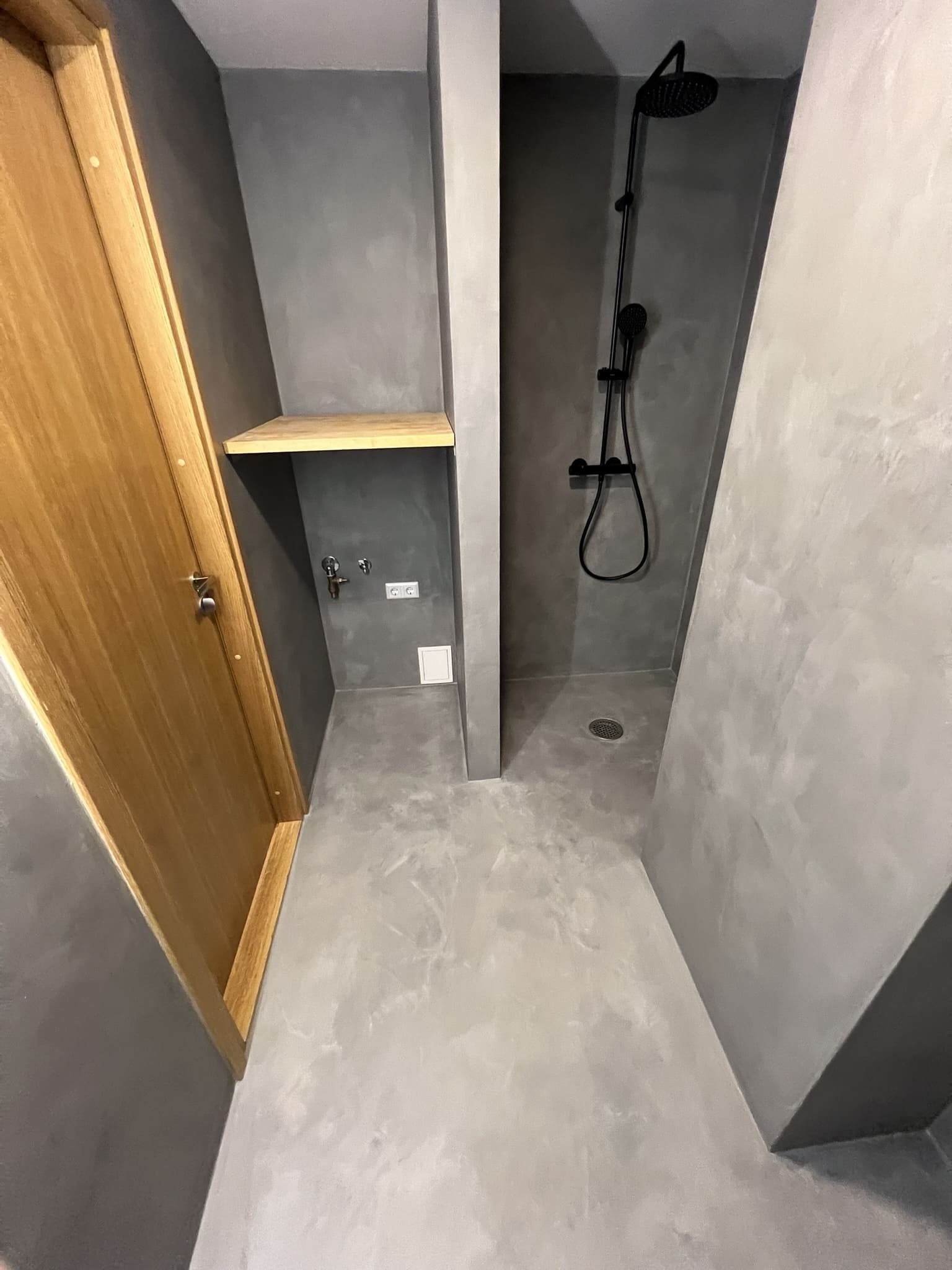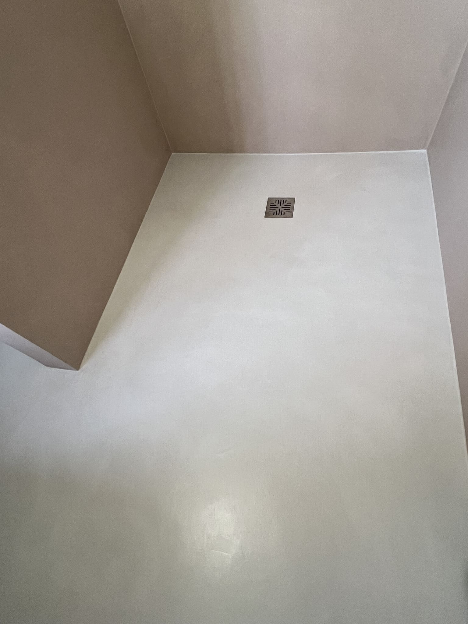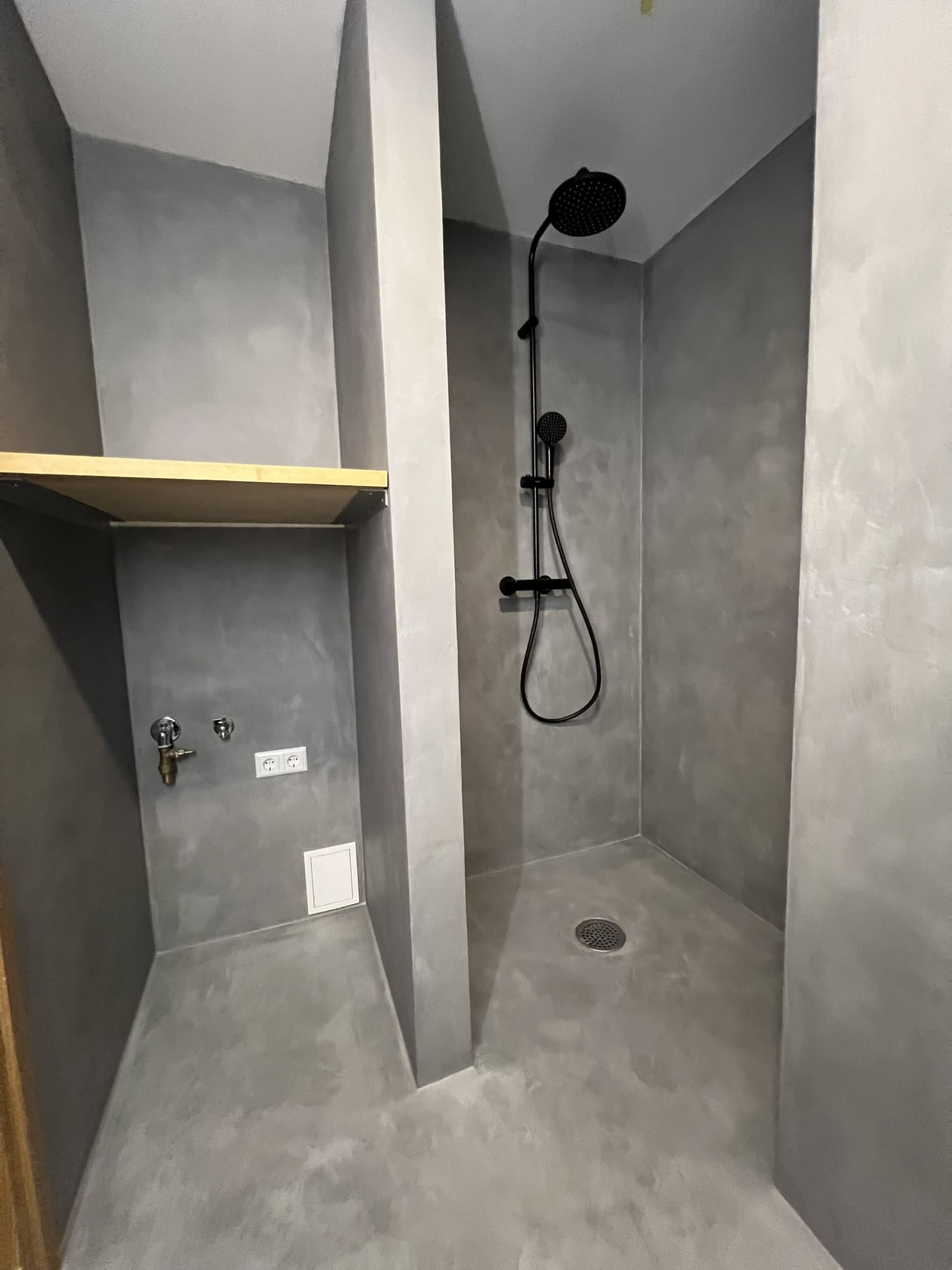 Mikrotsemendi tööd 8m2 pindalaga duširuumis suvilas. Toon: Sahhara.