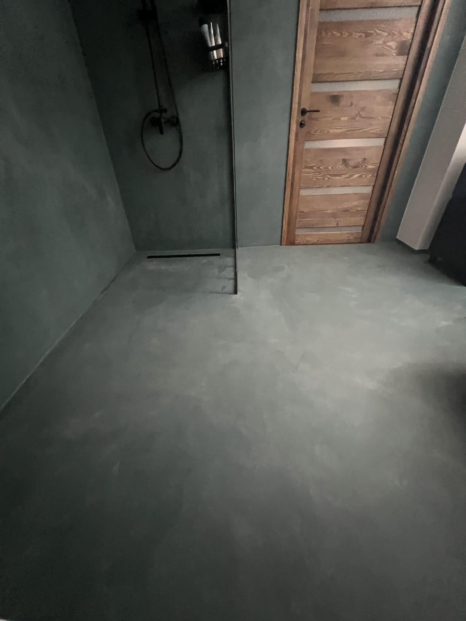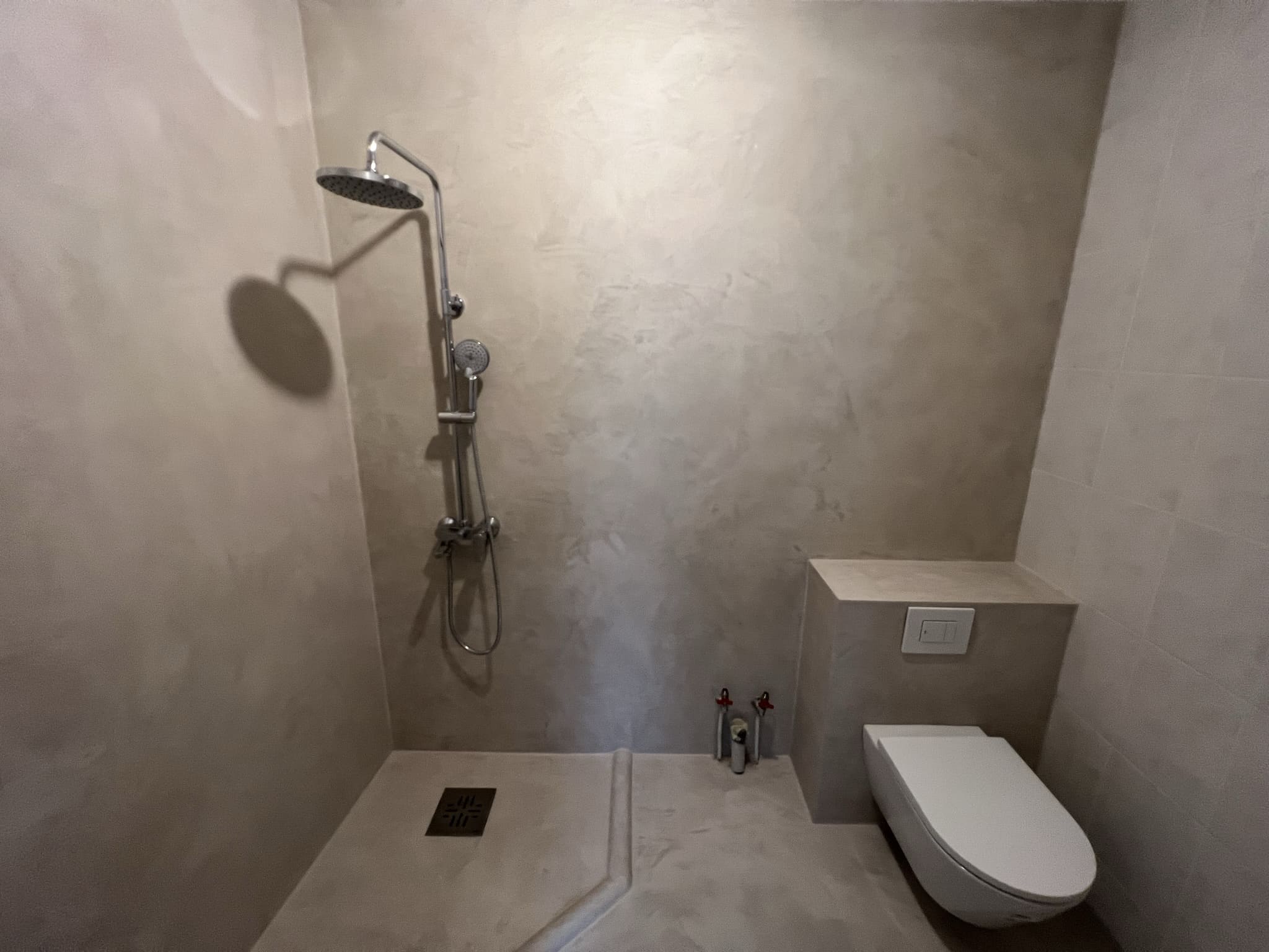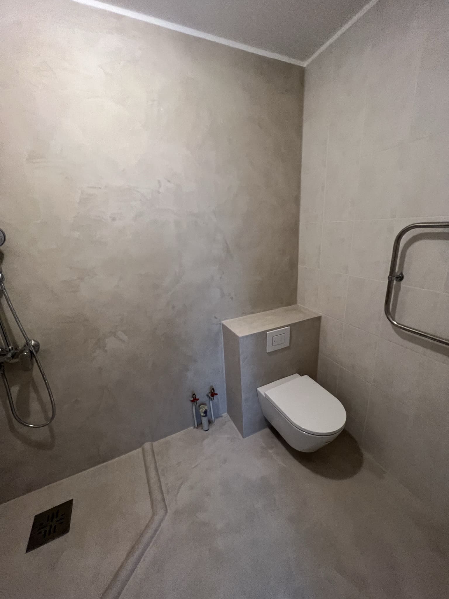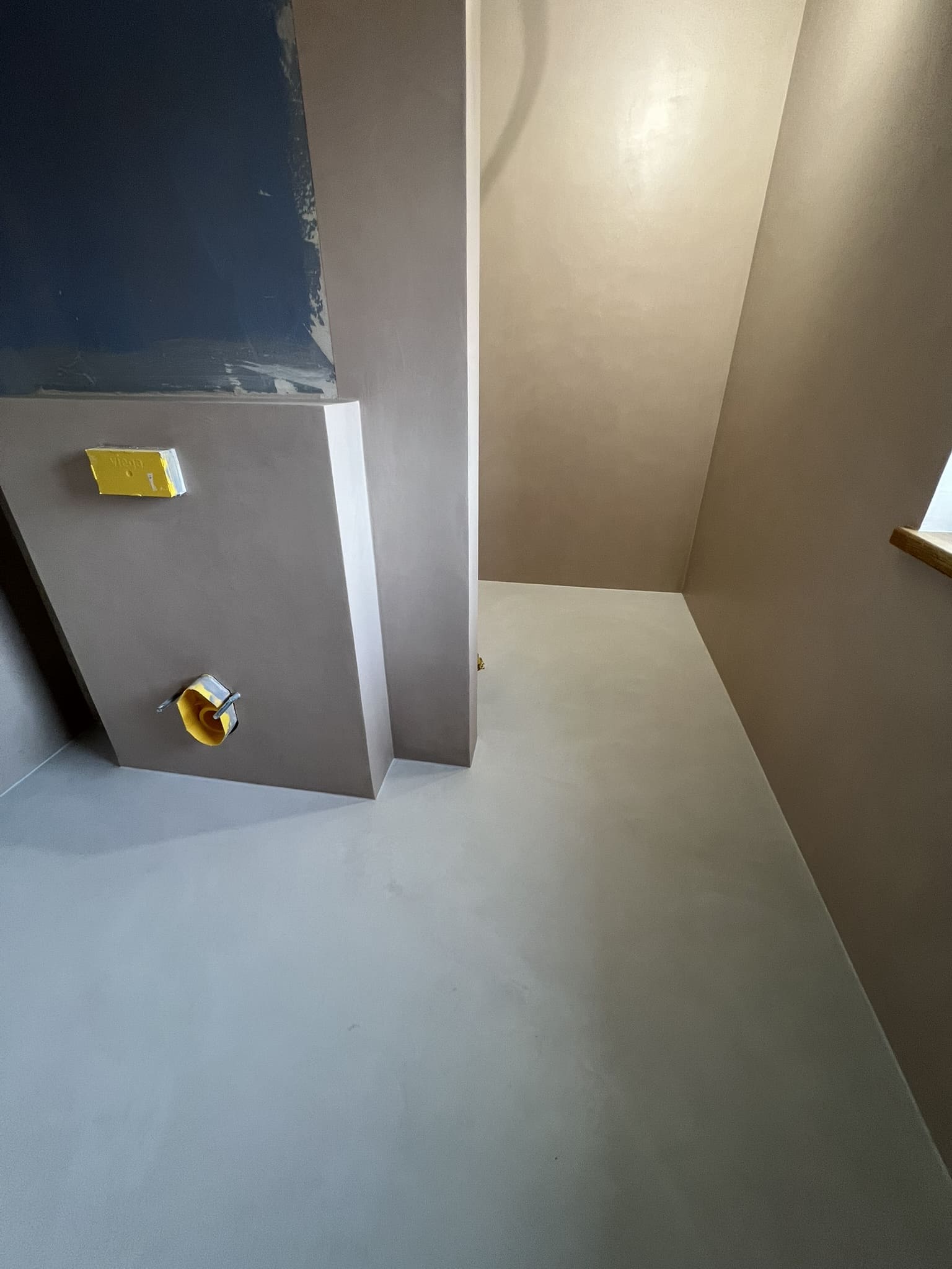 Mikrotsemendi tööd 8m2 pindalaga duširuumis suvilas. Toon: Sahhara.