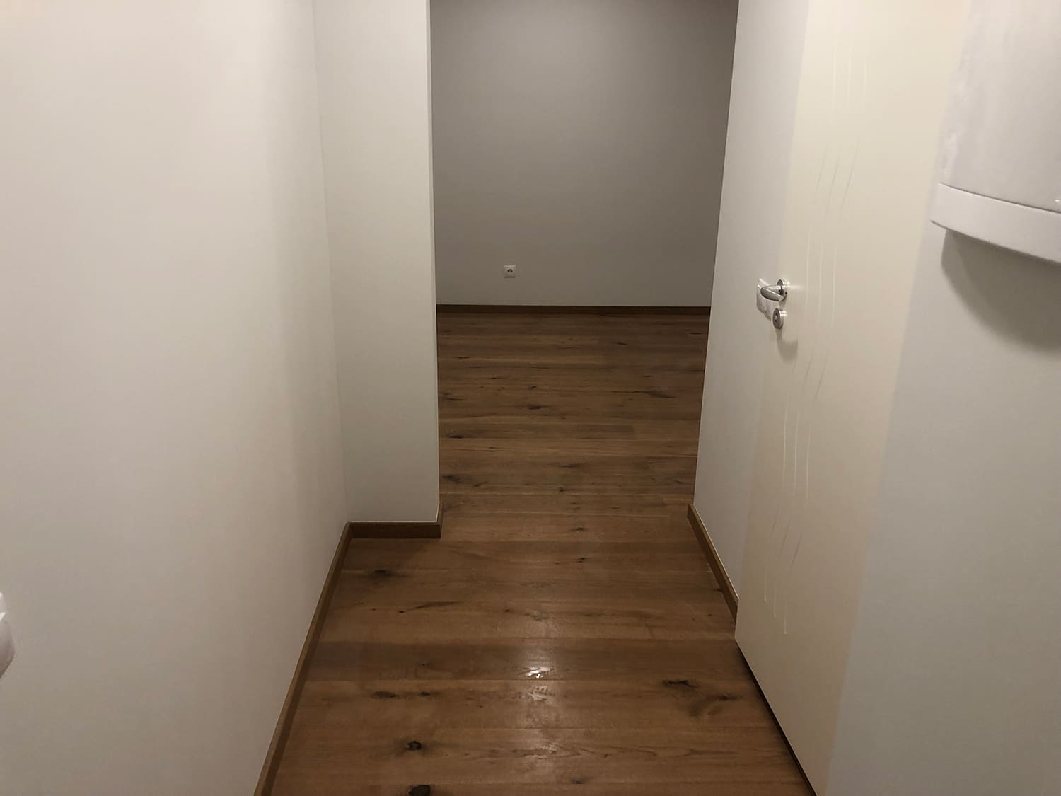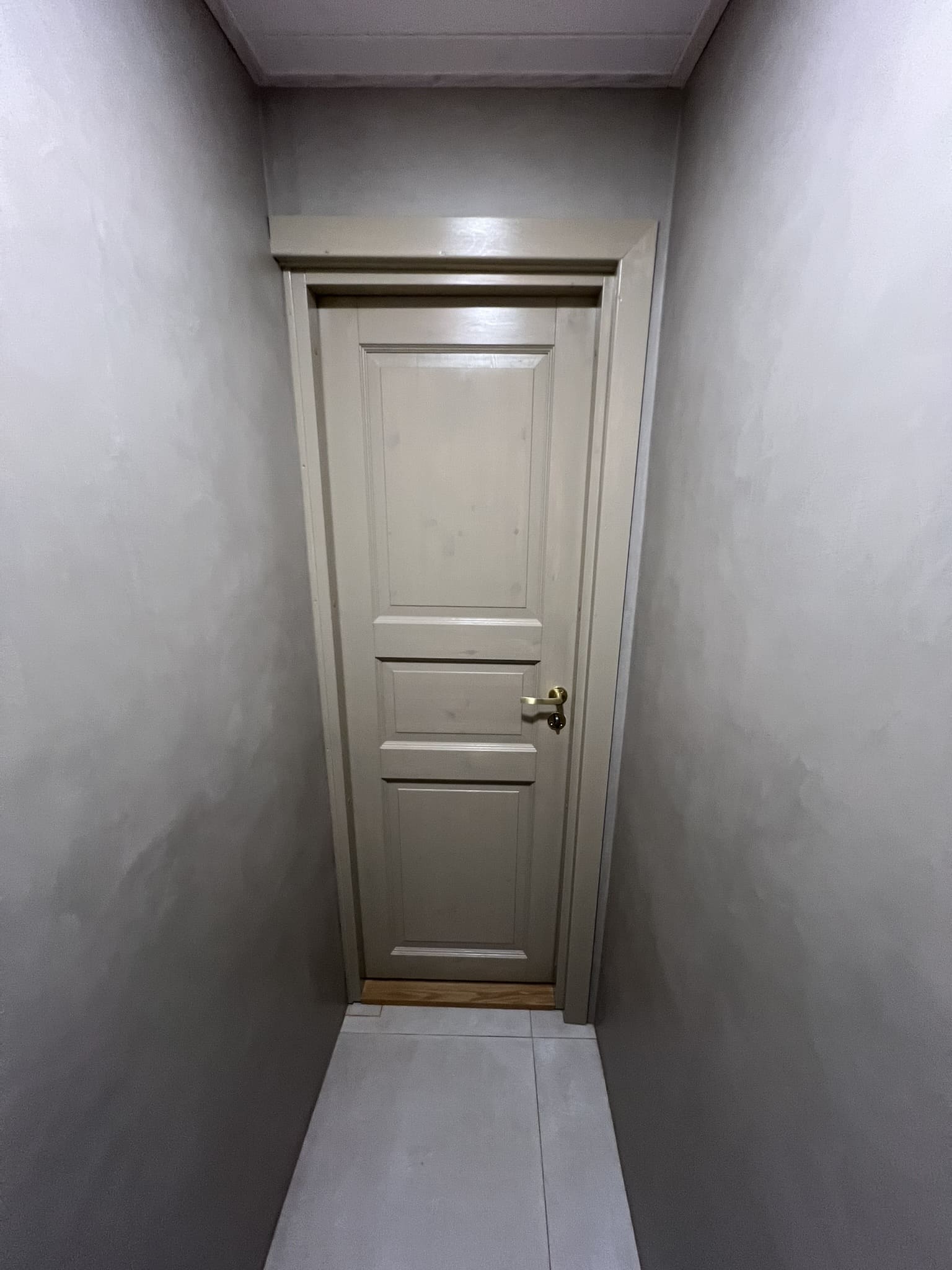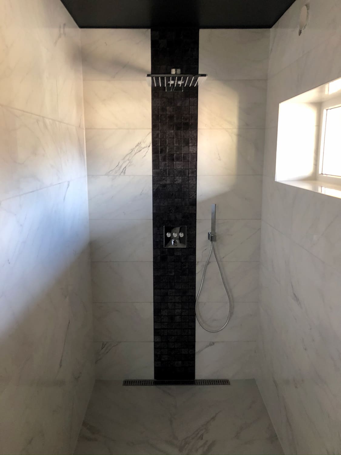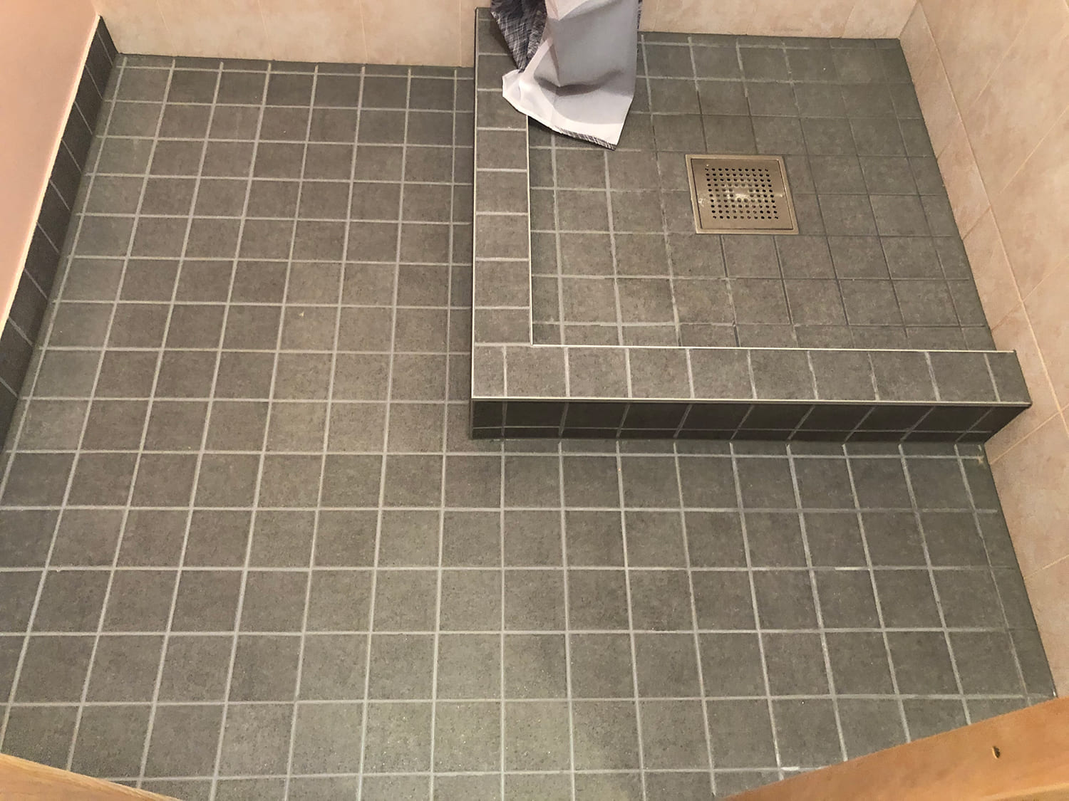 Lugu algas sellest, et klient kurtis , et vesi ei lähe ära nii nagu see seda tegema peaks. Pärast väikest inspekteerimist selgus, et torustik põranda all ei ole normide kohaselt ehitatud. Duširuumis on rohkesti hallitust, puudus igasugune ventilatsioon ja üldse oli rohkesti ehitusnorme eiratud. Ruum lammutati puhtaks ja ehitati uuesti nii nagu tänapäeva normid ette näevad. Lõppviimistluseks mikrotsement ( toon Gentle) ja santehnika ning mööbli paigaldus. Kuna tegemist oli ainult 2,5 m2 põrandapinnaga ruum, siis ruumi kokkuhoiu mõttes sai paigaldatud spetsiaalse valamu alla pesumasin. Nii on ruumis kõik vajalik olemas.