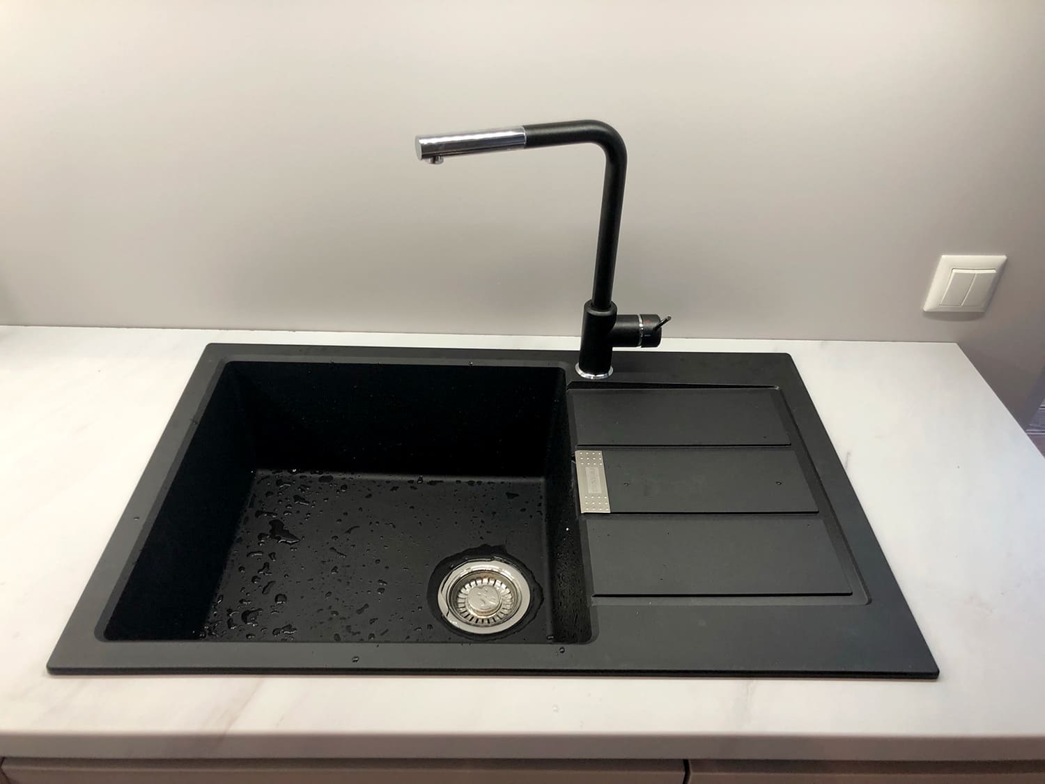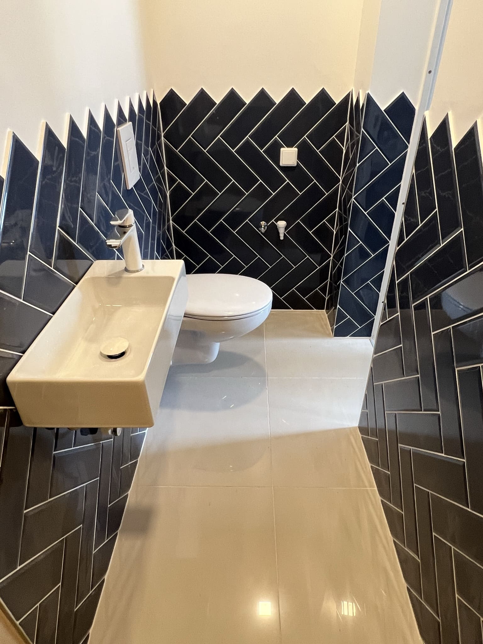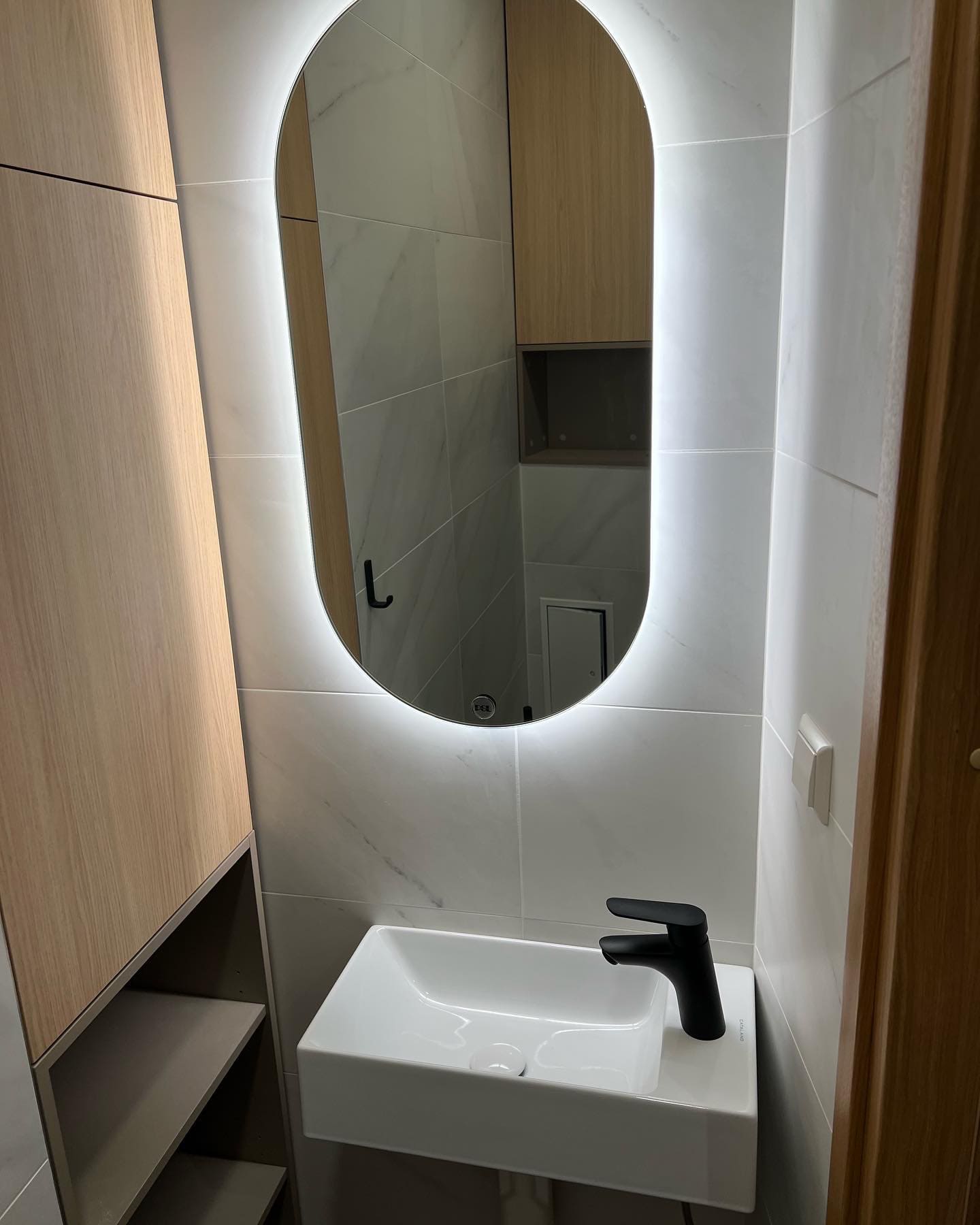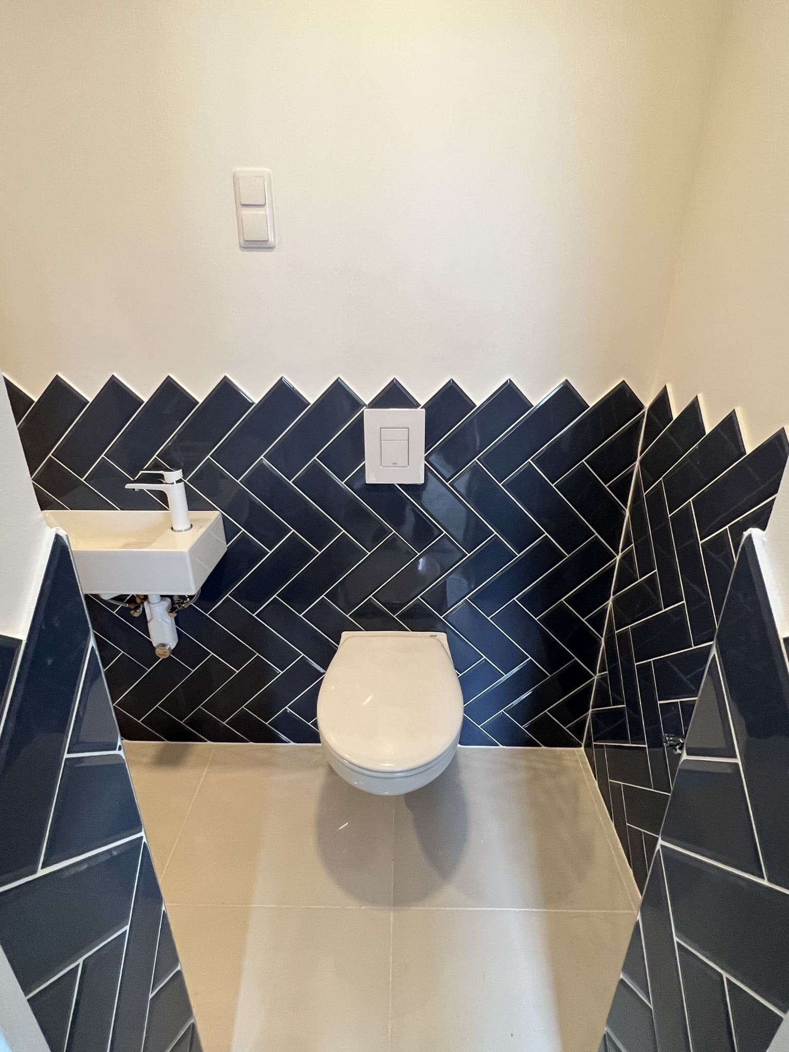 Täislahendus torutöödest, ruumi väljaehitusest, plaatimisest ja tarvikute paigaldamisest. Kasutatud on kvaliteetset ja innovaatilist Grohe seinasisest SmartControl-segistit ning seinasisest WC-potti. Grohe sanitaartehnika annab igale pesuruumile elegantse ja modernse välimuse.