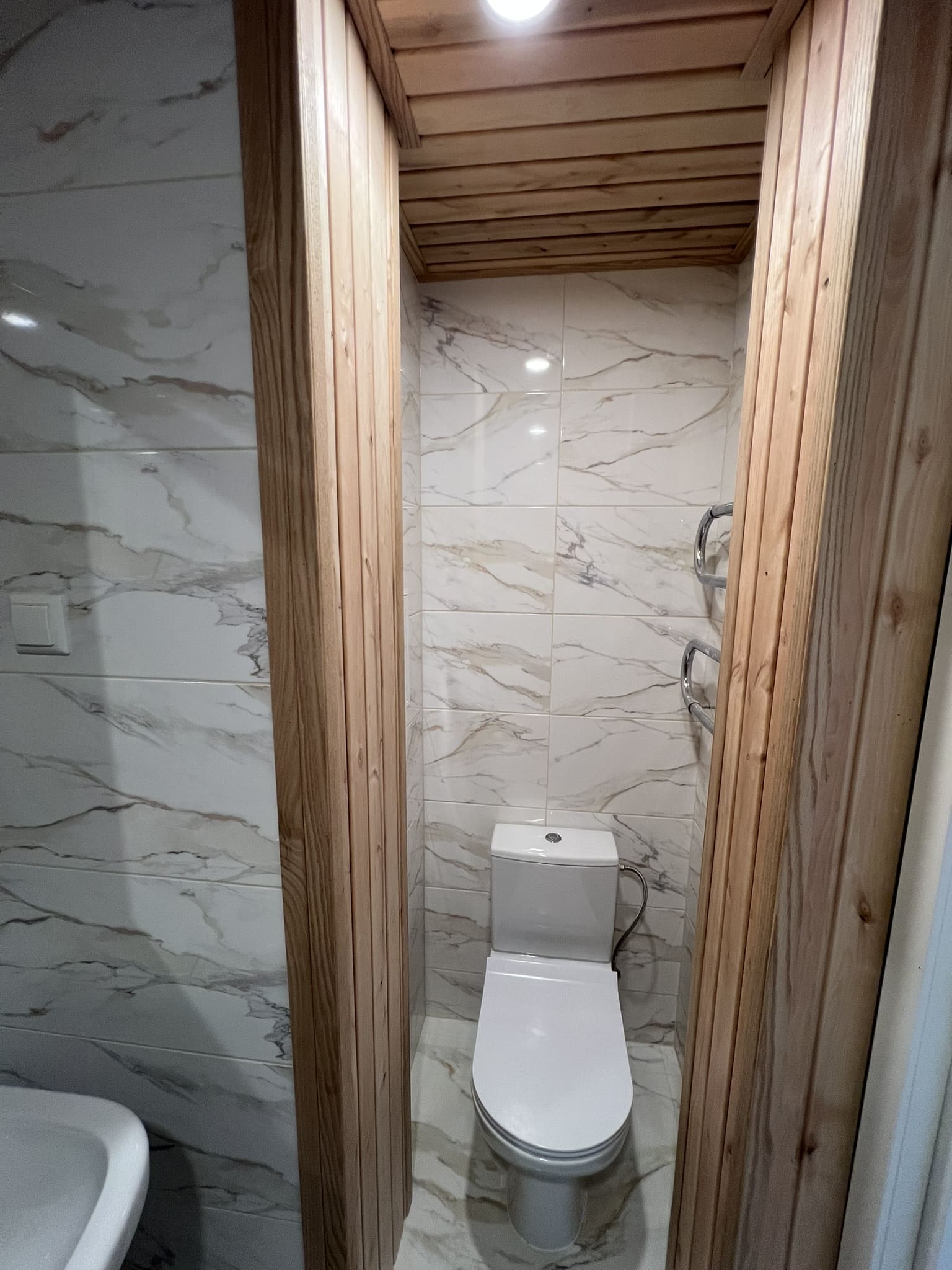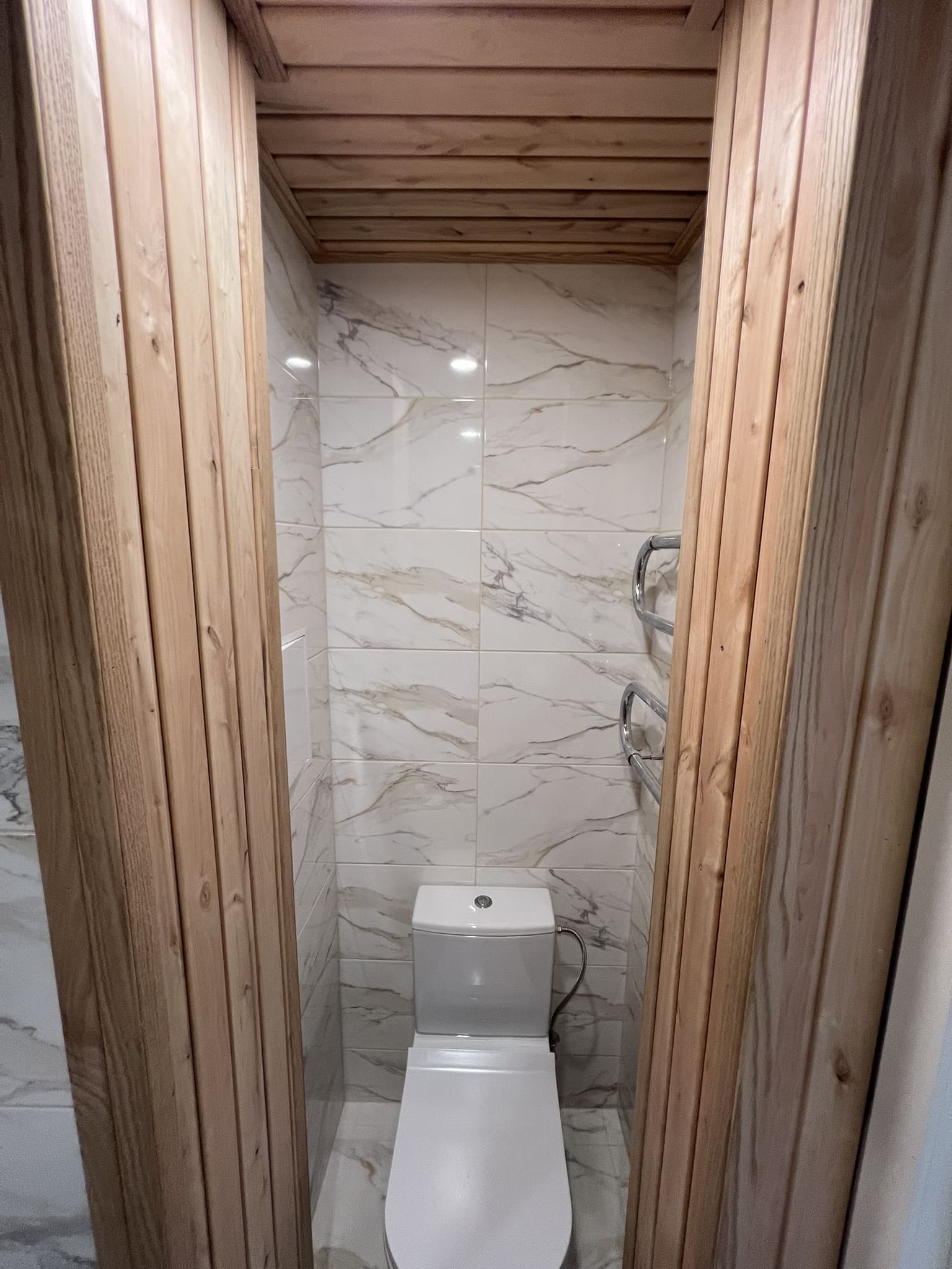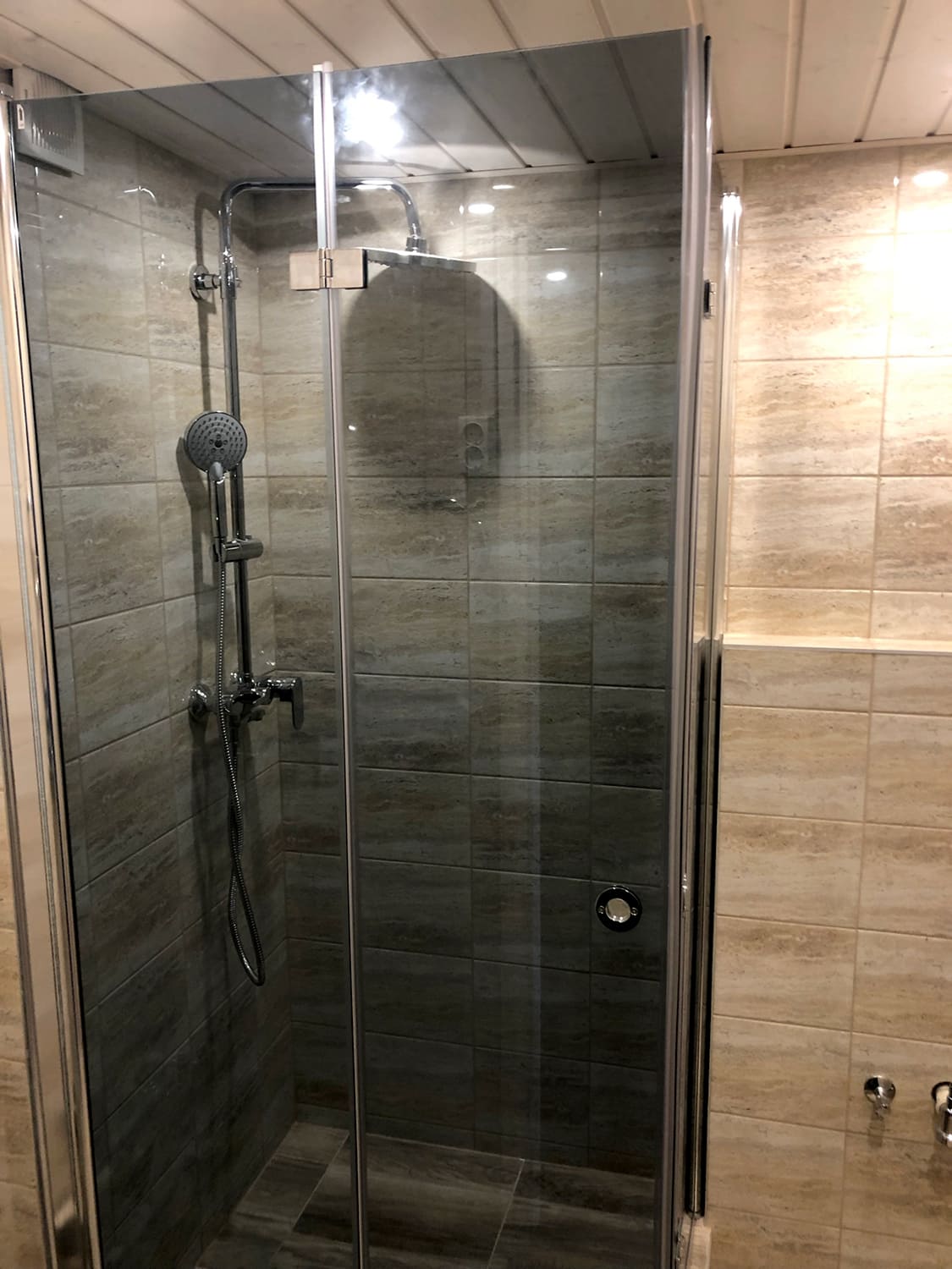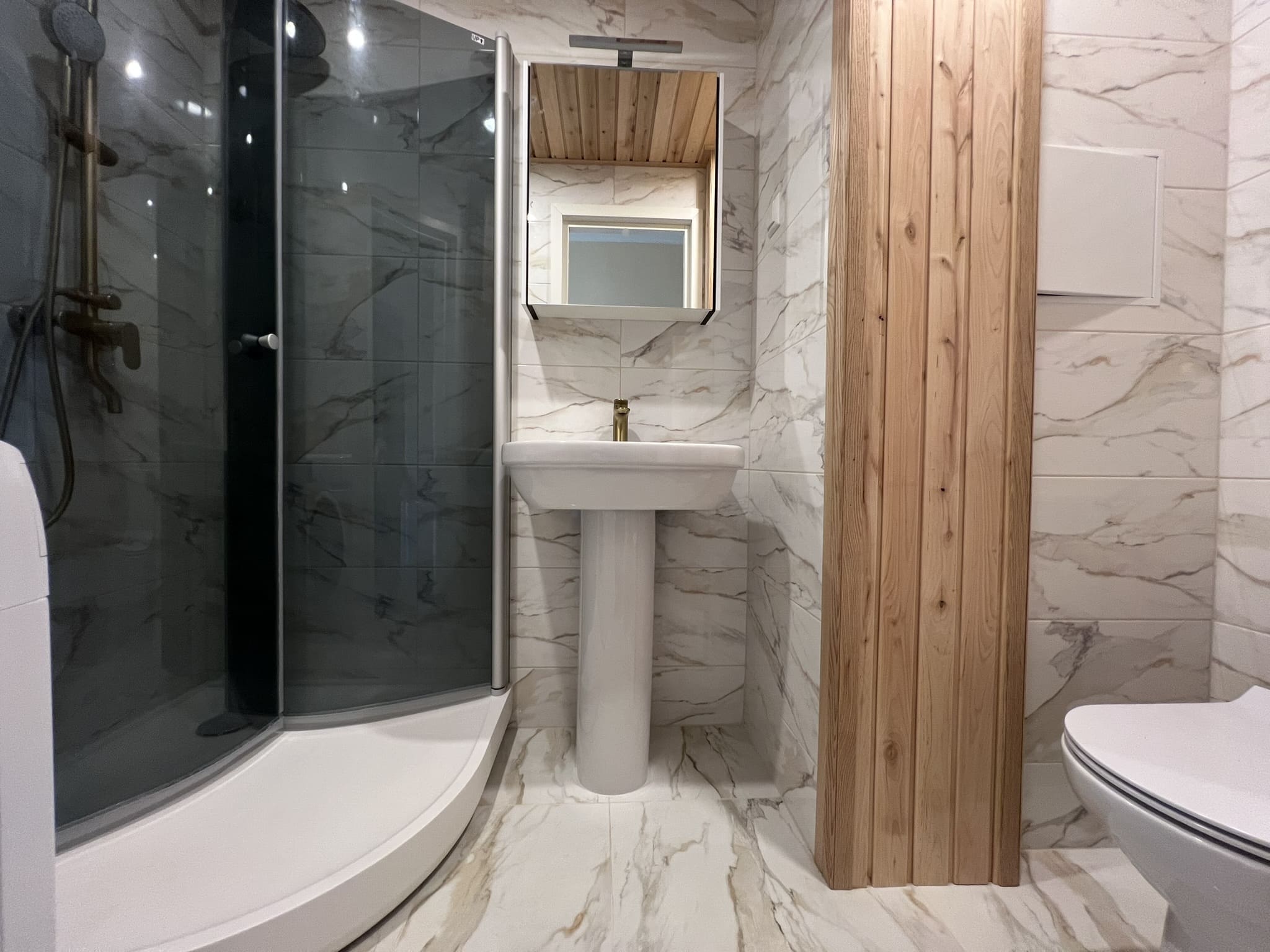 Algselt eraldi olevad duširuum ja wc ehitati kokku. klient valis ise keraamilise plaadi, mille marmorilaadne muster näitab elegantsust ning lepa sisevoordilauast puitelemendid toovad elegantsuse veelgi esile. Klient valis samuti ise santehnika, mille meie lahkesti paigaldasime. Antud on duširuum on eriline selle poolest, et klient soovis paigaldada Balteco Xonyks kivialusega dušinurka, nii sai dušipõrand valatud kalde alla, kui peaks tulevikus soov olema tahtma dušialust dušinurga vastu vahetada, siis saab seda ilma ümberehituseta kergesti teha! Tulemuseks väga avar ja majesteetlik duširuum!