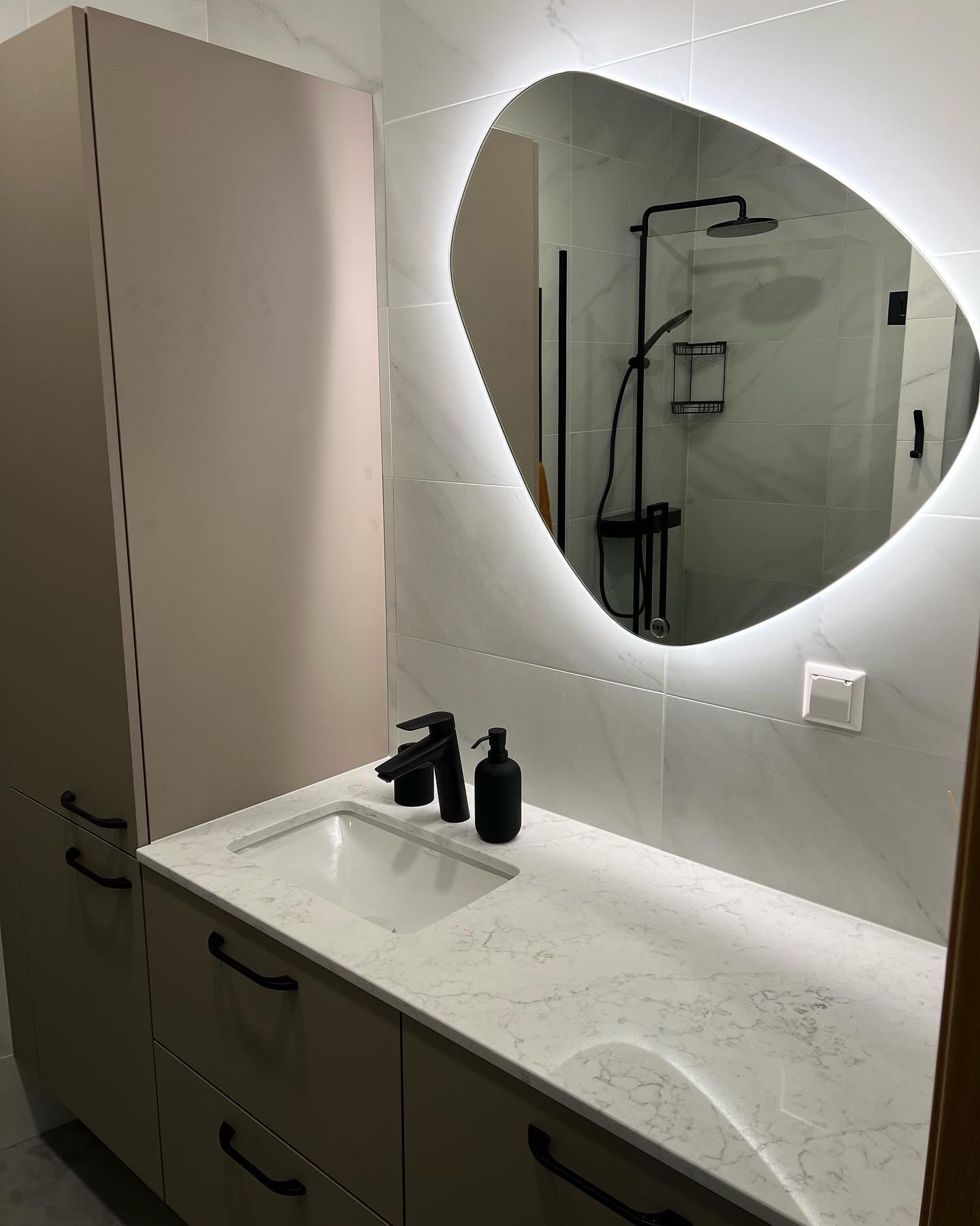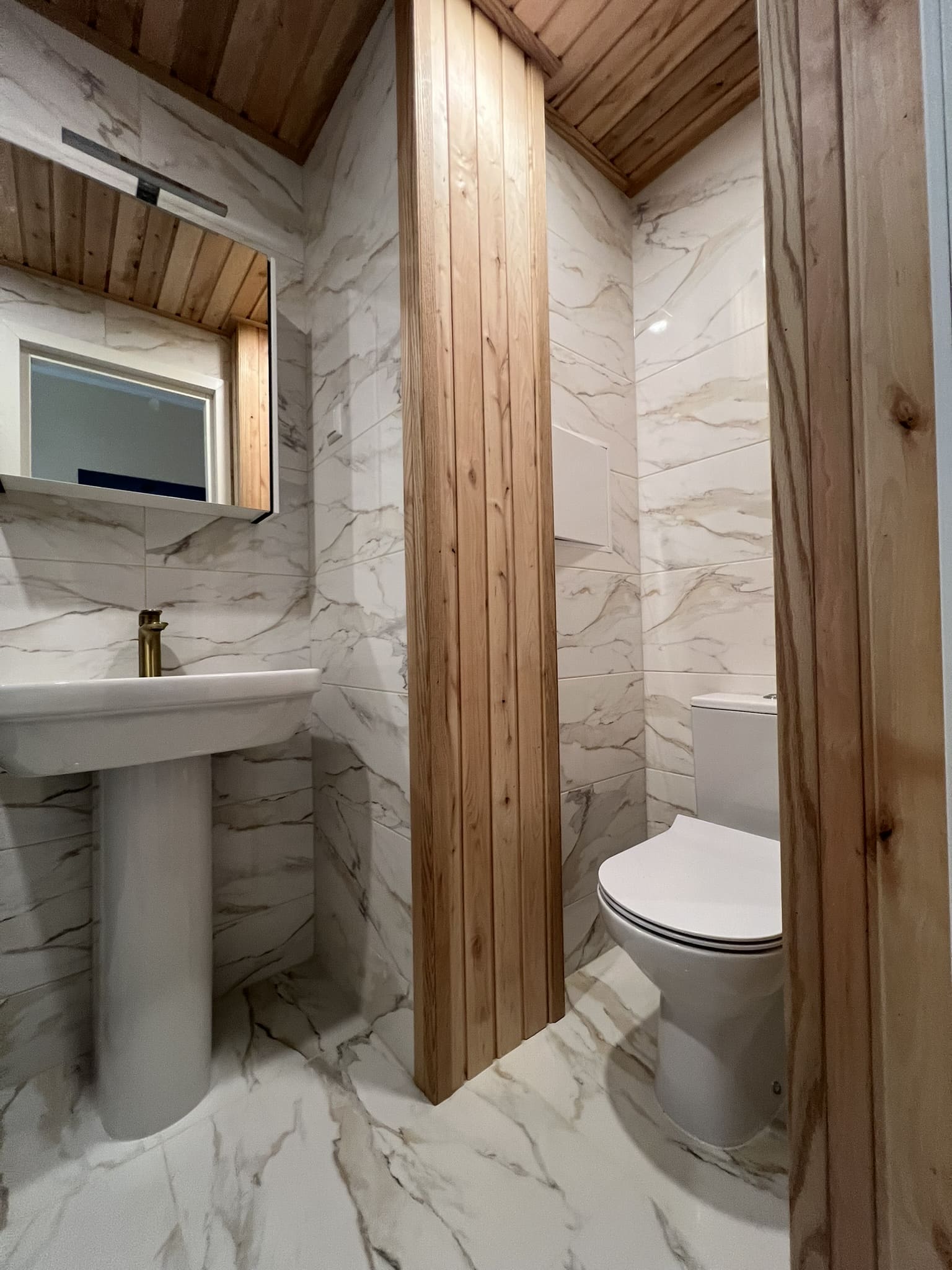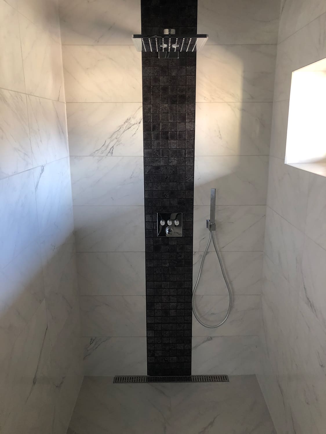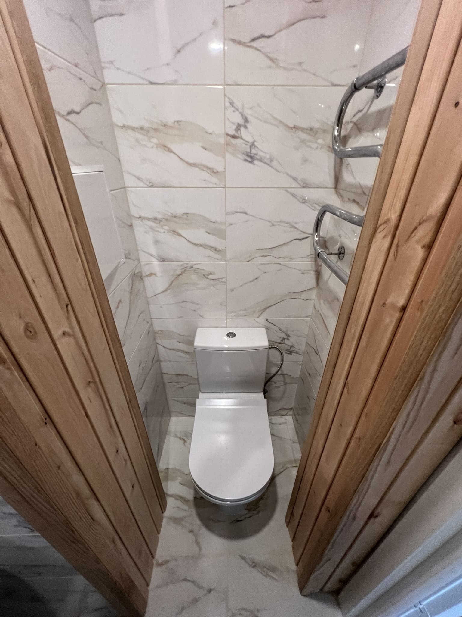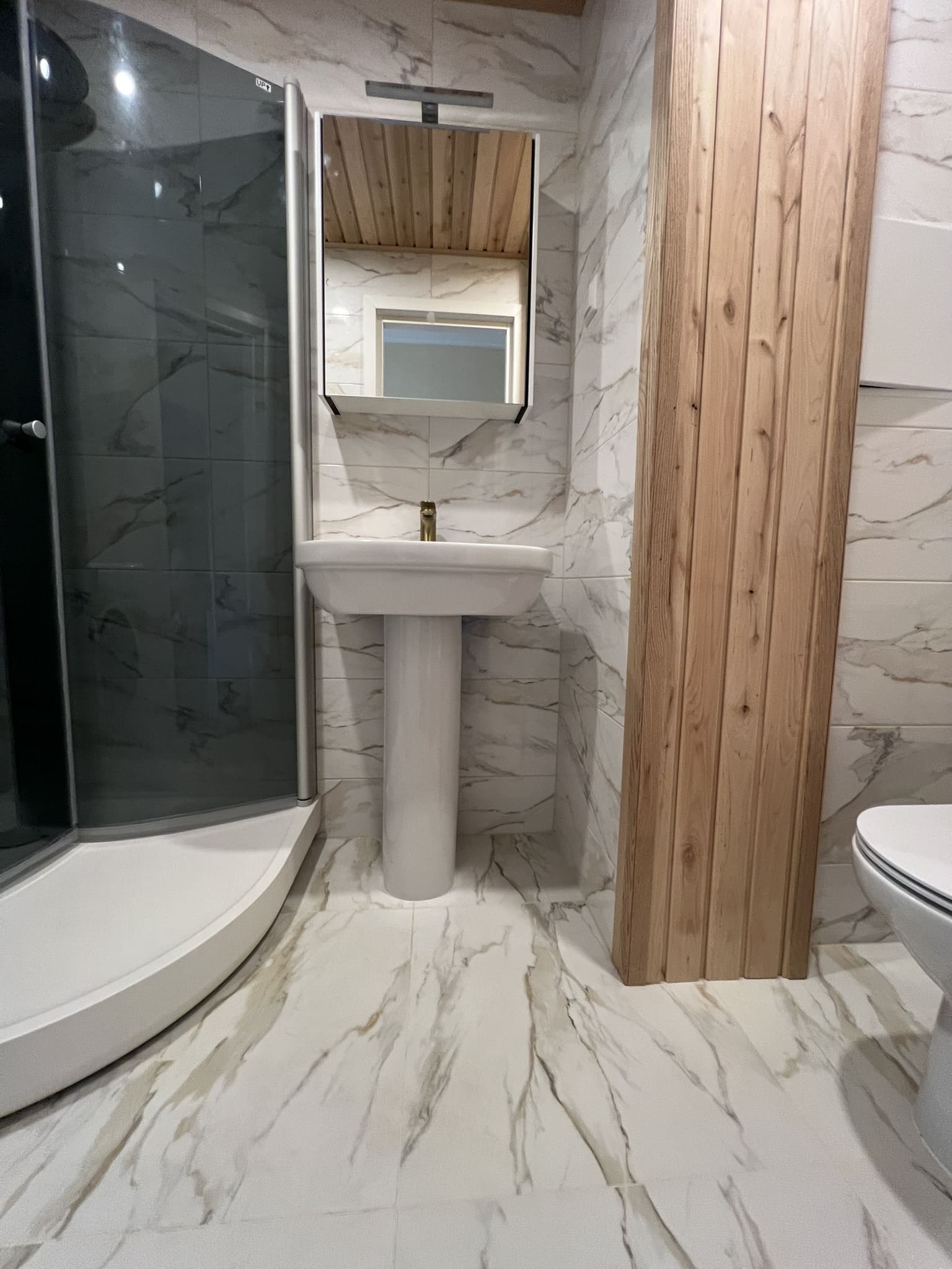 Algselt eraldi olevad duširuum ja wc ehitati kokku. klient valis ise keraamilise plaadi, mille marmorilaadne muster näitab elegantsust ning lepa sisevoordilauast puitelemendid toovad elegantsuse veelgi esile. Klient valis samuti ise santehnika, mille meie lahkesti paigaldasime. Antud on duširuum on eriline selle poolest, et klient soovis paigaldada Balteco Xonyks kivialusega dušinurka, nii sai dušipõrand valatud kalde alla, kui peaks tulevikus soov olema tahtma dušialust dušinurga vastu vahetada, siis saab seda ilma ümberehituseta kergesti teha! Tulemuseks väga avar ja majesteetlik duširuum!