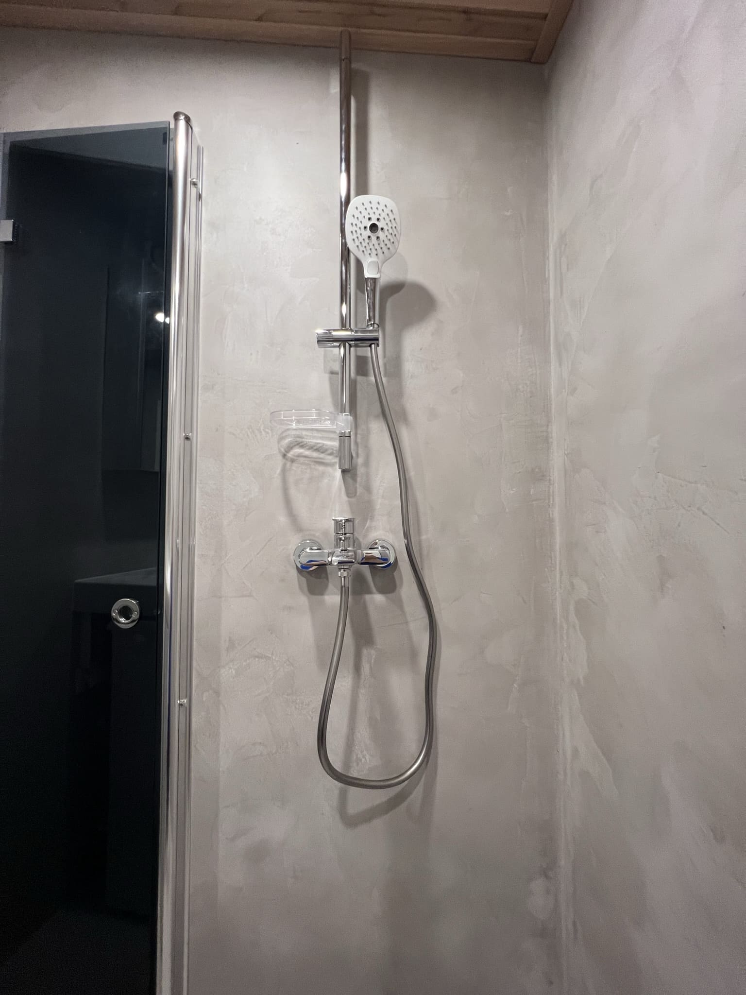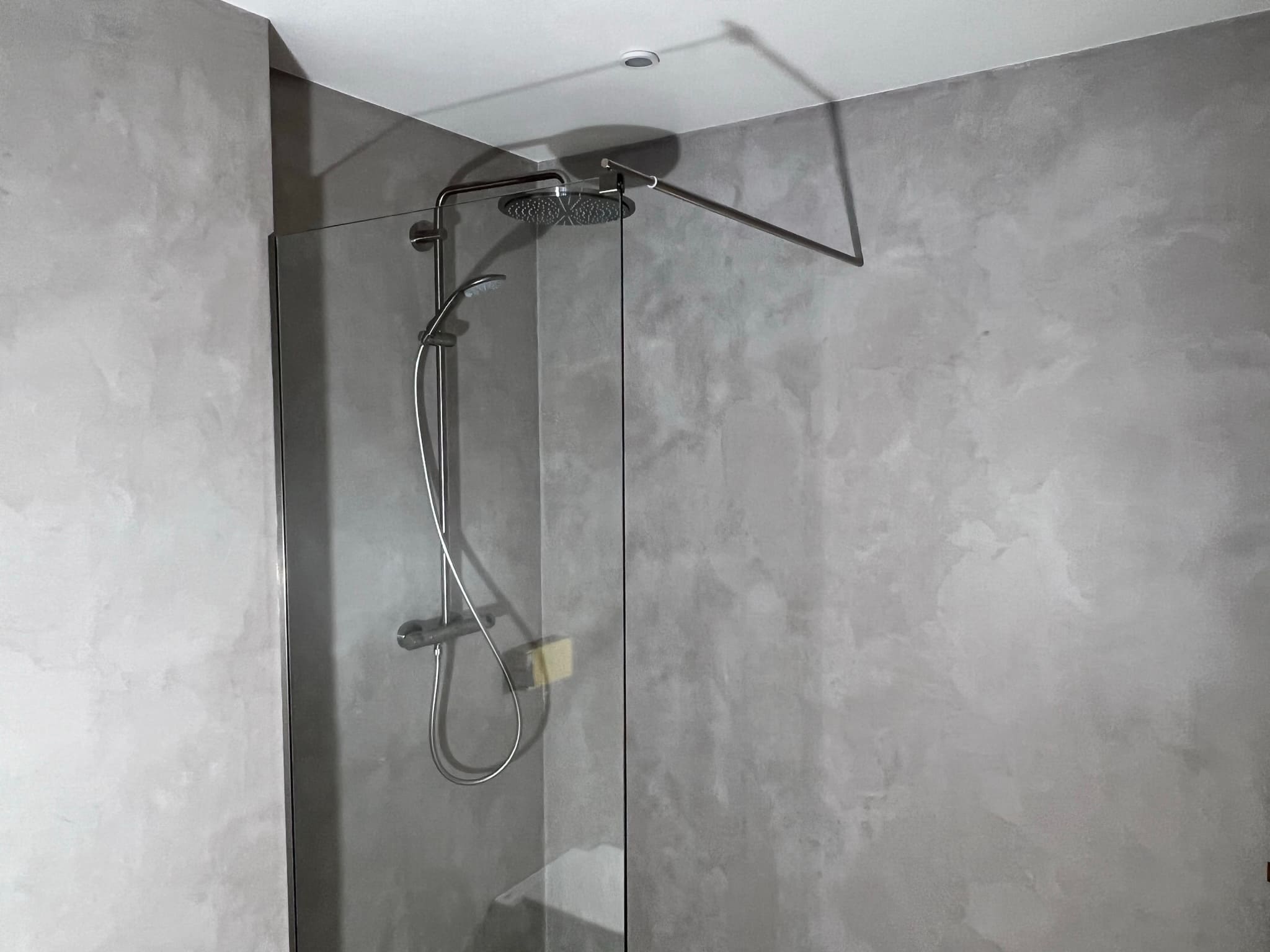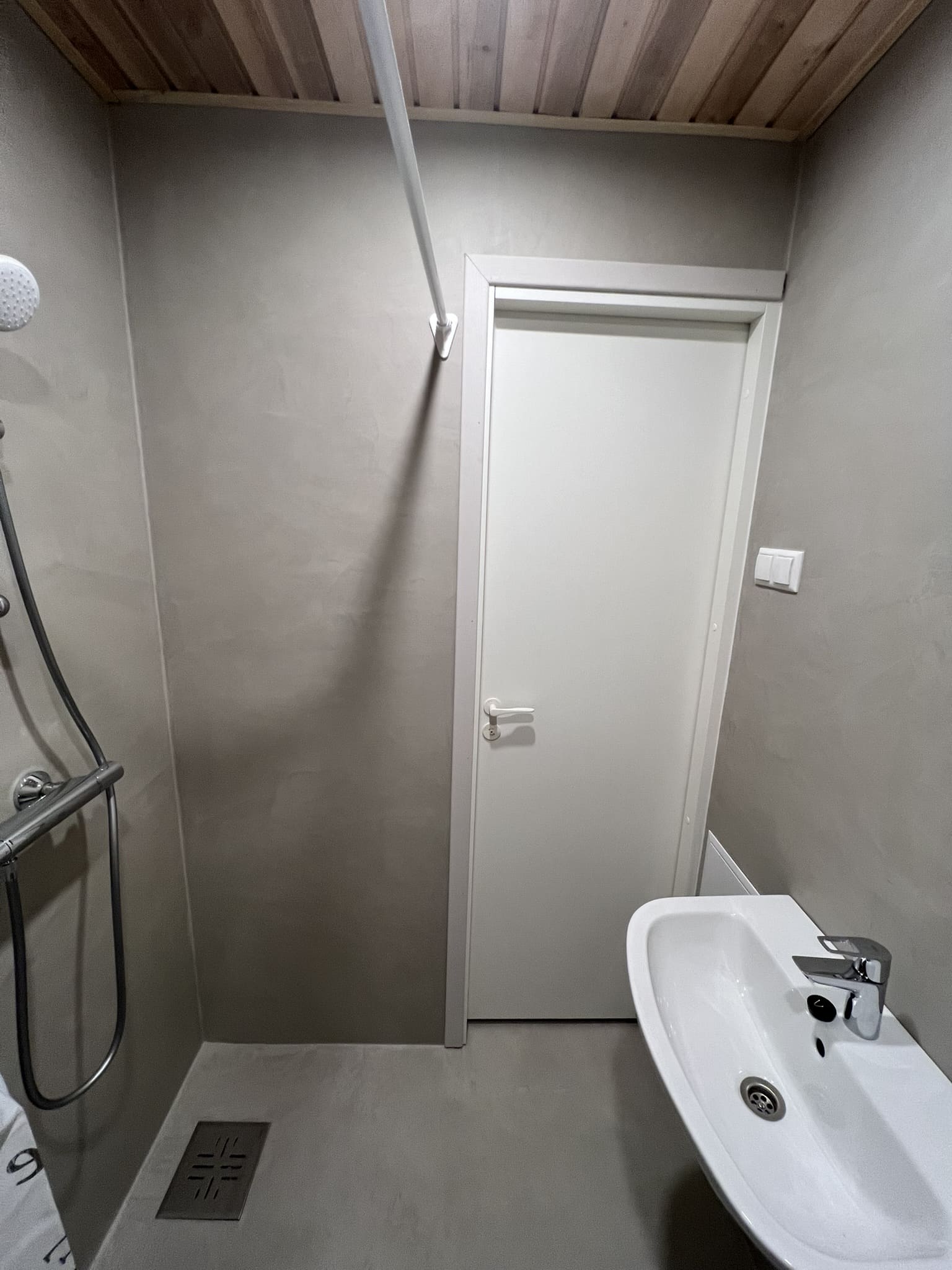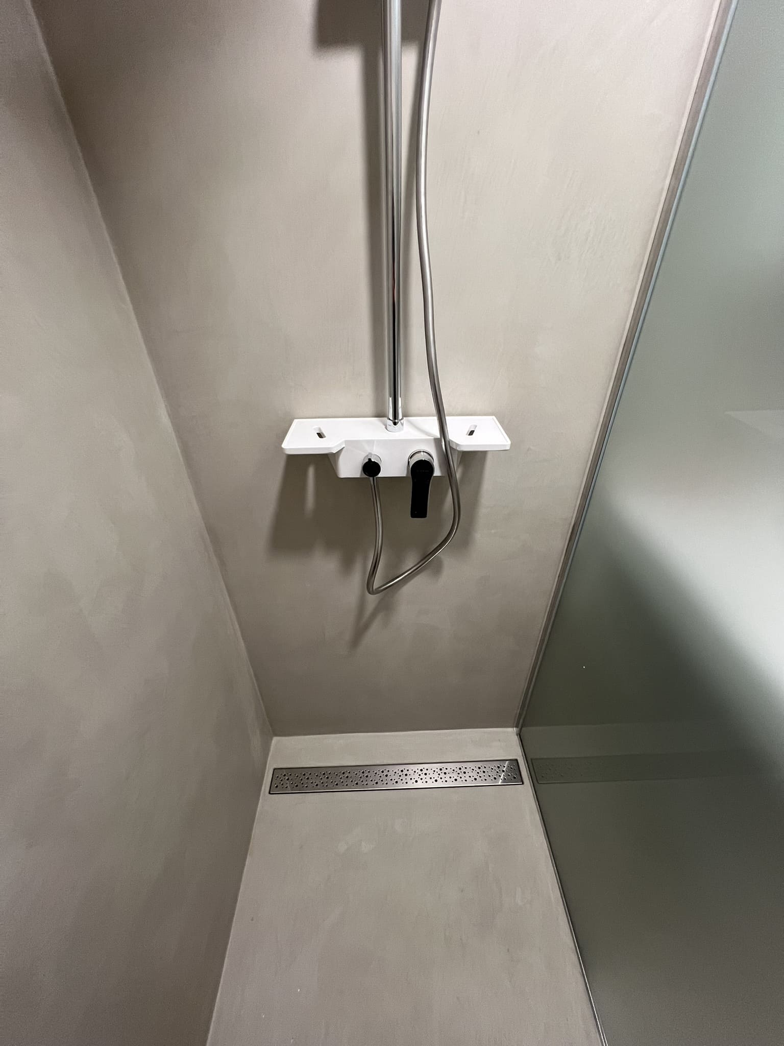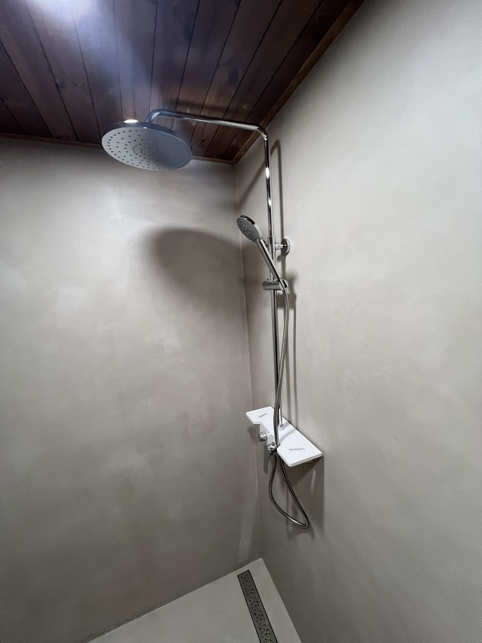 Käisime räppar AG-l külas ja tegime talle täislahendusena 4,5 m2 põrandapinnaga duširuumi mikrotsemendi tööd. Mikrotsemendi alla läks ka lagi. Mikrotsement paigaldati olemasoleva keraamilisele plaadile. Toon Basebeton Duhe. Abiks olime ka santehniliste töödega.