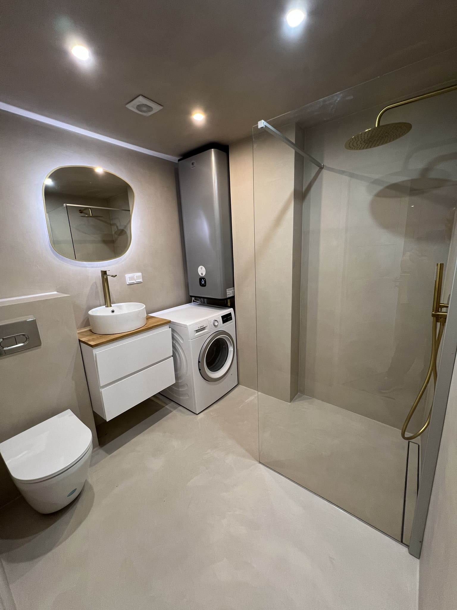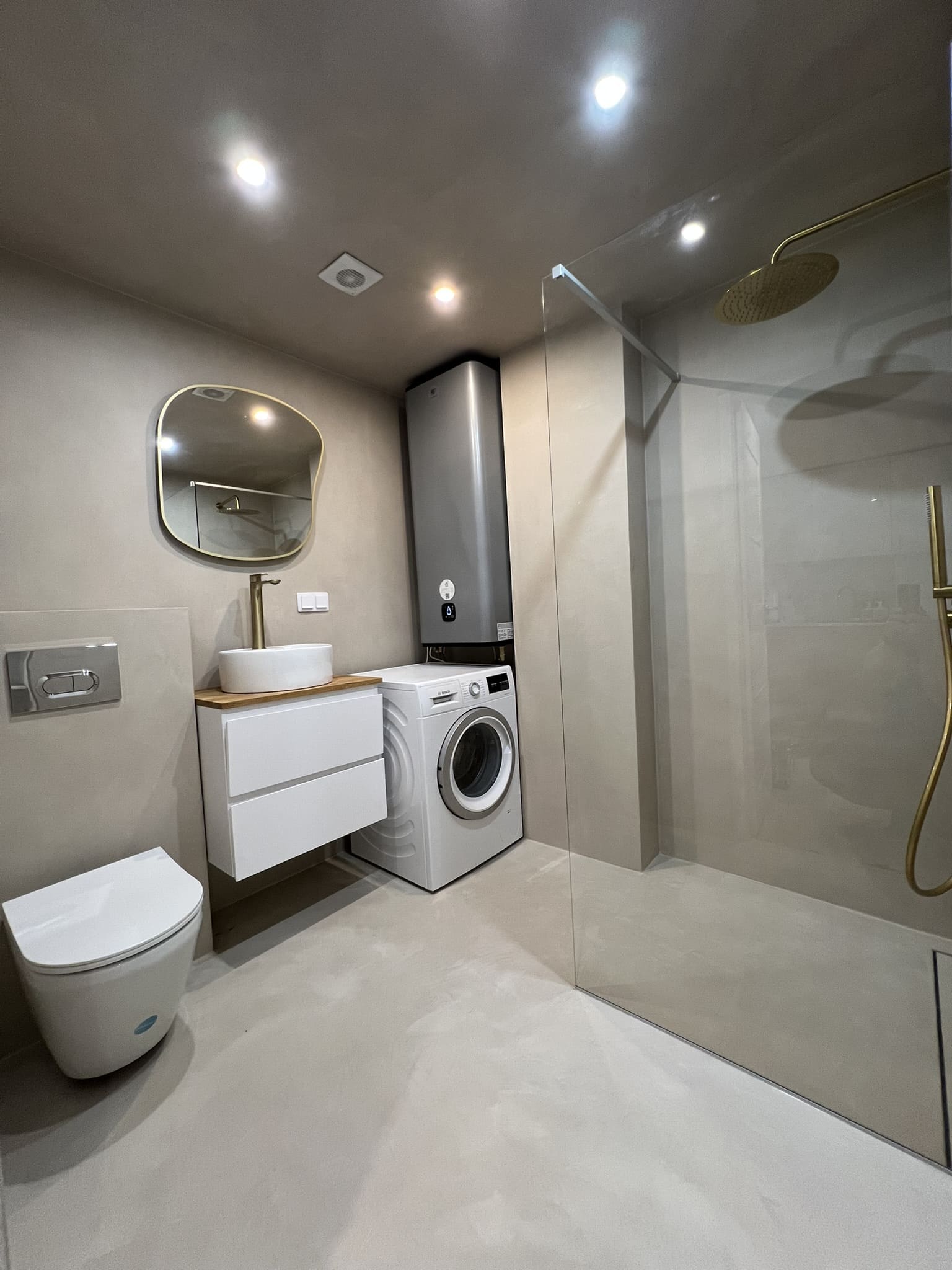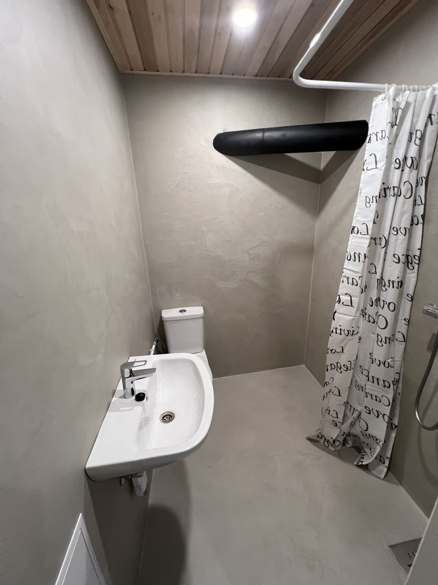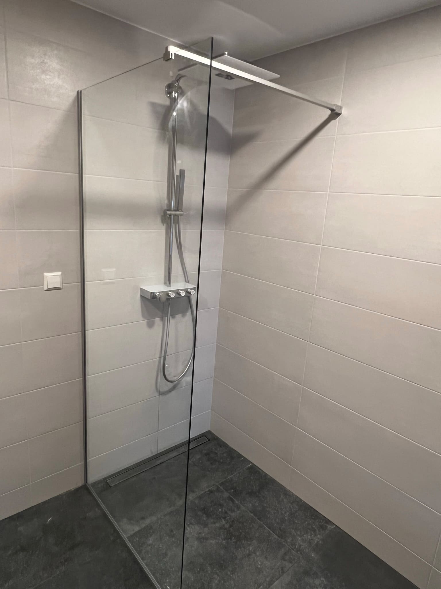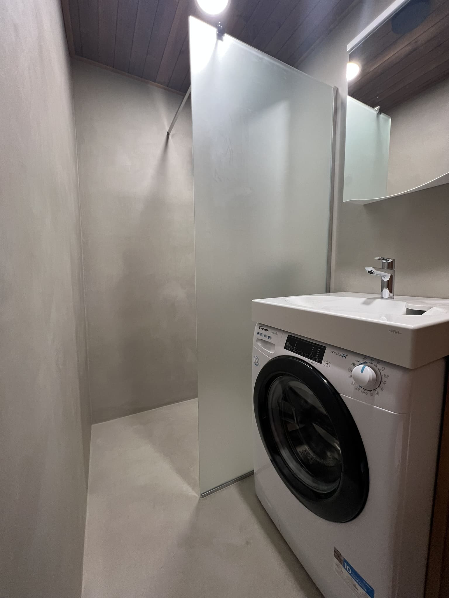 Käisime räppar AG-l külas ja tegime talle täislahendusena 4,5 m2 põrandapinnaga duširuumi mikrotsemendi tööd. Mikrotsemendi alla läks ka lagi. Mikrotsement paigaldati olemasoleva keraamilisele plaadile. Toon Basebeton Duhe. Abiks olime ka santehniliste töödega.