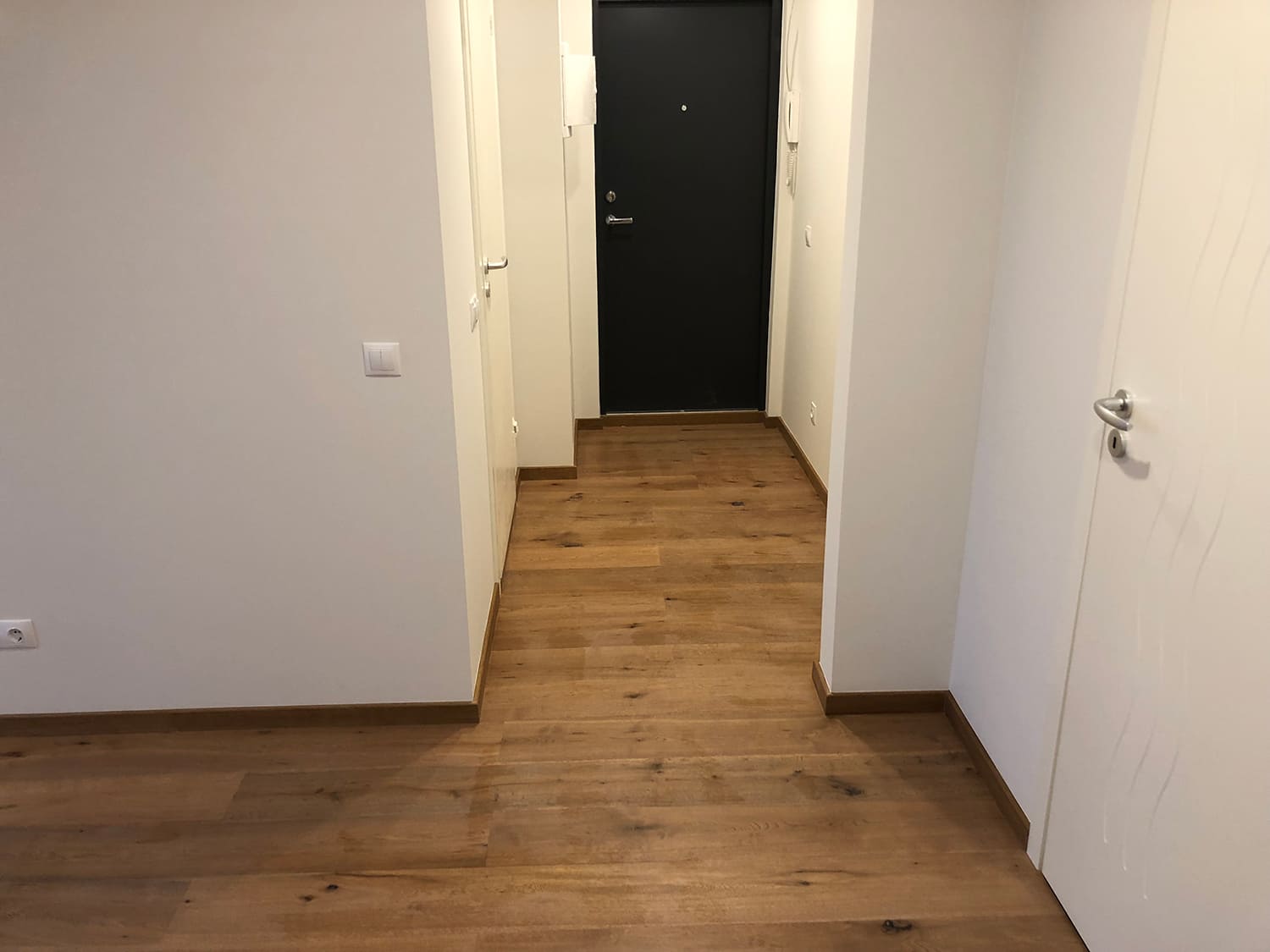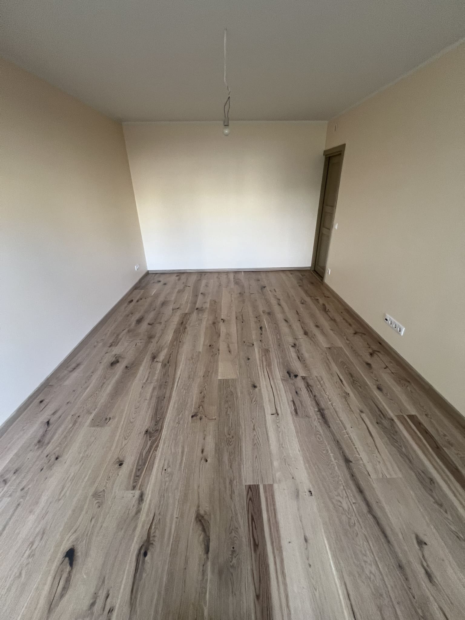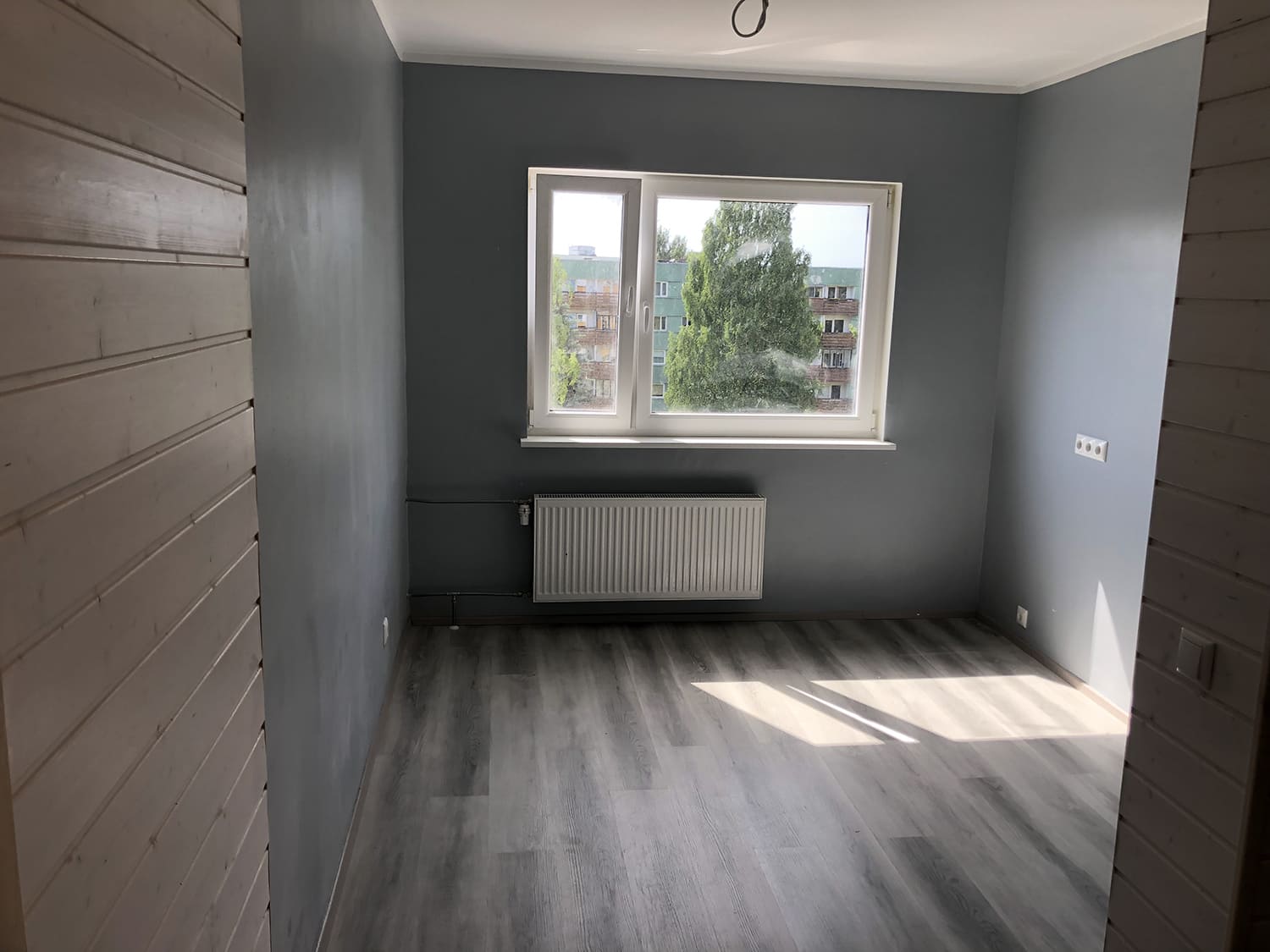 Tegemist on täislahendusena kahetoalise 48 m2 pindalaga korteri remondiga 60-datel ehitatud paneelmajas. Lammutusele läks kõik peale põrandate, mis olid hästi säilinud, ja vaheseinte. Vaheseintel ja lagedelt eemaldati vana krohv, mis armeeringuga krohviti uuesti üle ja maalritöödega viimistleti. Tubade põrandaid kattis tammeparkett.Köögi, koridori, duširuumi ja tualetti põrandaid omakorda 600×600 keraamiline klinkerplaat. Duširuumi ja tualeti seinad viimistlesime mikrotsemendiga ( toon: Gentle). Mikrotsement ja puit sobivad omavahel hästi kokku, siis duširuumi ja tualeti lagi koos tagumise seinaga paigaldati valge sisevoordilaud. Mikrotsementi on väga sobilik ka köögitasapinna tagusele seinale kanda, tööde lihtsustamise mõttes sai need enne köögimööbli paigaldamist ära tehtud.