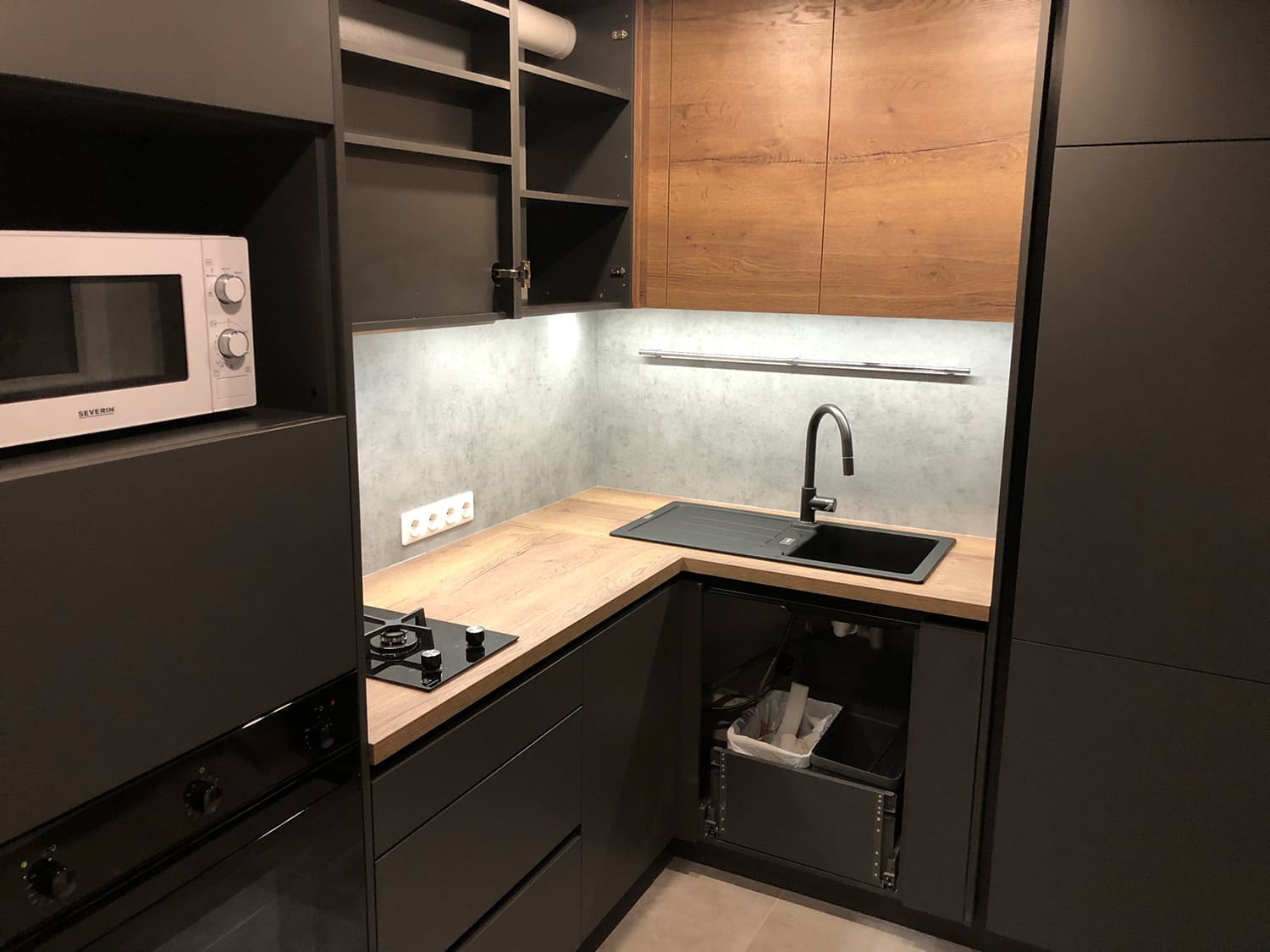 Nagu me teame, on paneelmajade köögid väikesed. Koostöös www.koogimoobel24.ee-ga leiti kiiresti sobiv köögilahendus ja see paigaldati professionaalselt. Selles ilusas ja modernses köögis on olemas kõik vajalik.