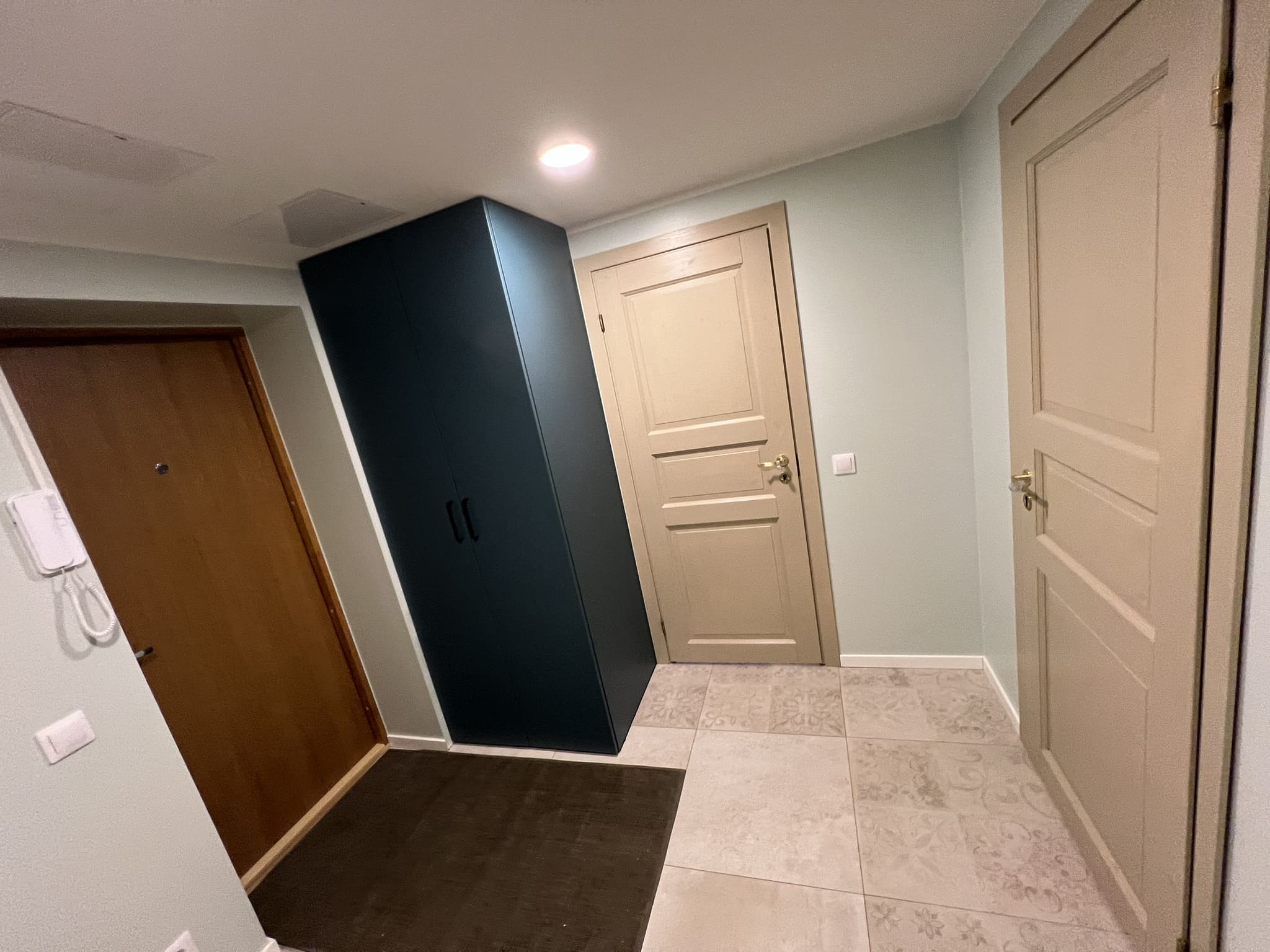 Valmis paneelmaja 48 m² kahetoaline korter tehti “võtmed kätte” lahendusena – alates lammutustöödest kuni lõppviimistluseni. Arvesse võeti tellija soove ja nägemust värvivalikust, mis peegeldab tema iseloomu ja hoiakut. Selline värvilahendus on tänapäevaste modernsete toonide kõrval täiesti raamidest väljas, kuid tulemuseks on omapärane ja maitsekas lahendus.