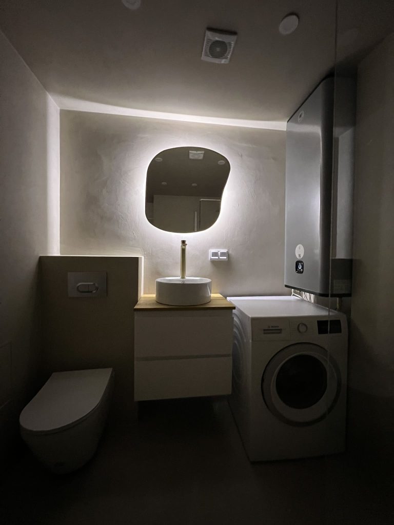 Ruumid valmisid täislahendusena – alates lammutusest kuni taasülesehituseni. Arvesse võttes kliendi soove, õnnestus suhteliselt väiksesse ruumi mahutada kõik vajalik.